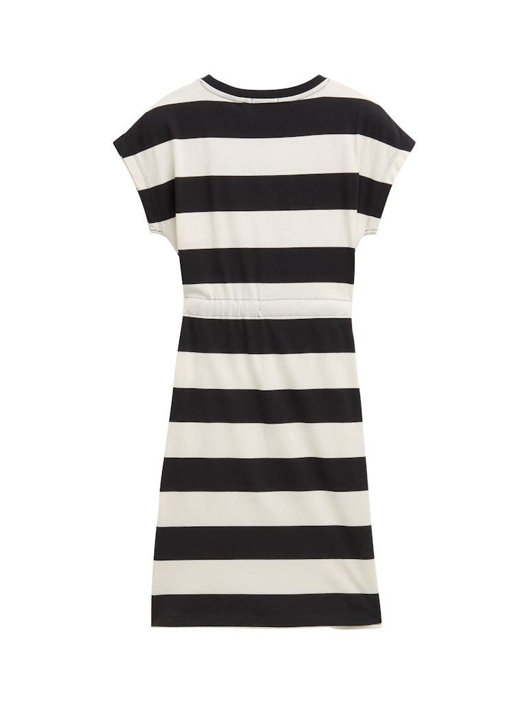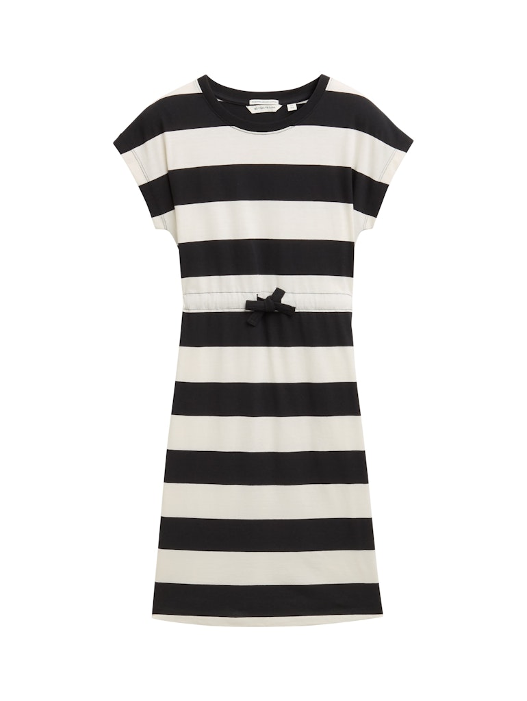 * Kurzes, gestreiftes Kleid mit Kordelzug an der Taille. Aus einem Single-Jersey-Stoff aus Baumwolle.