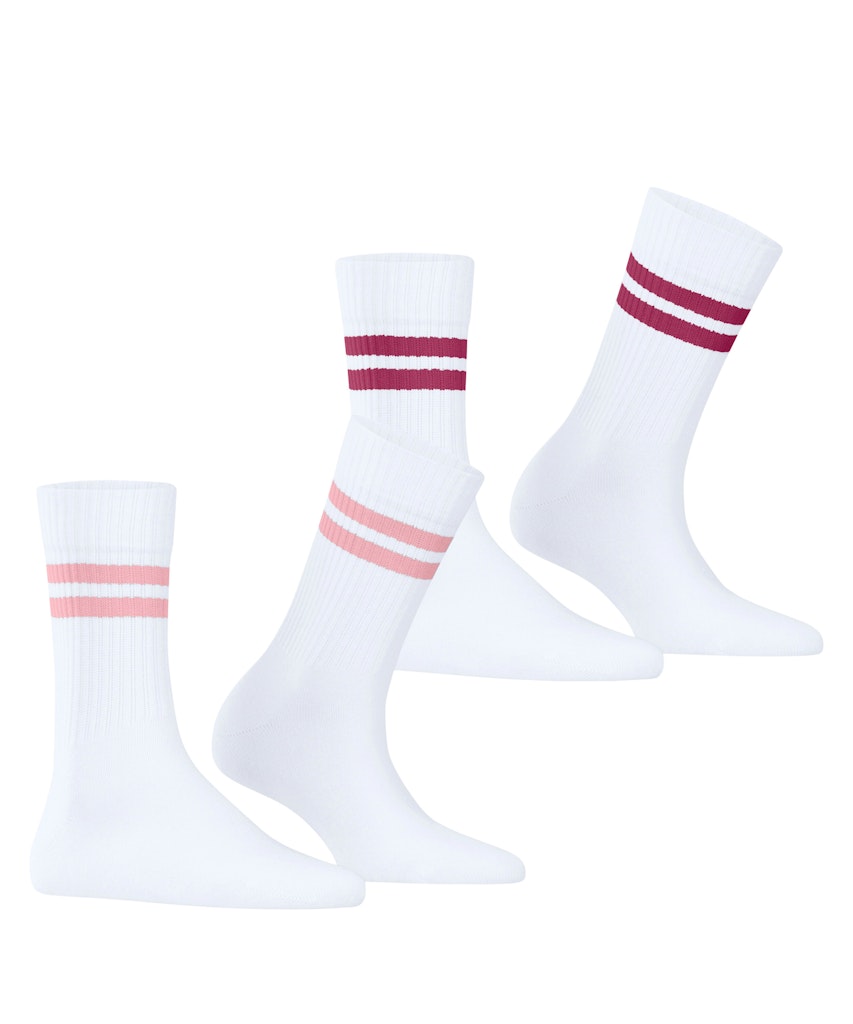 Die Damen-Socke interpretiert den Tennis-Look auf feminine Weise, denn die klassische Rippenstruktur am Schaft wird von farbigen Akzentstreifen veredelt. Die Ringel bringen einen glamourösen Touch in das sportliche Design der Strümpfe. Das 2er-Pack sorgt mit zwei unterschiedlichen Designs für Abwechslung.