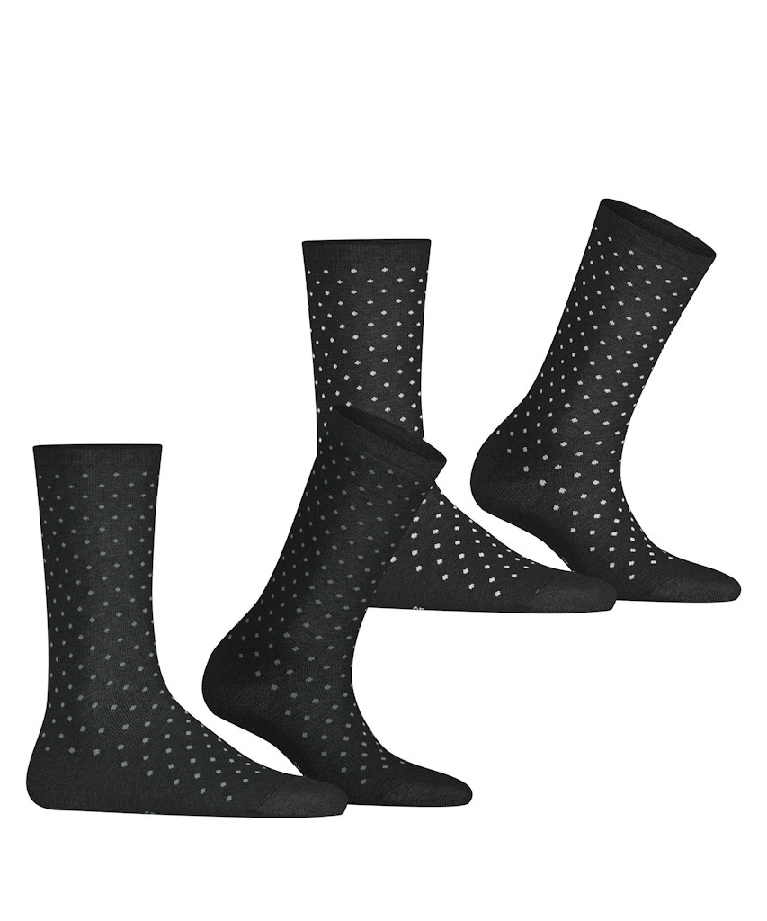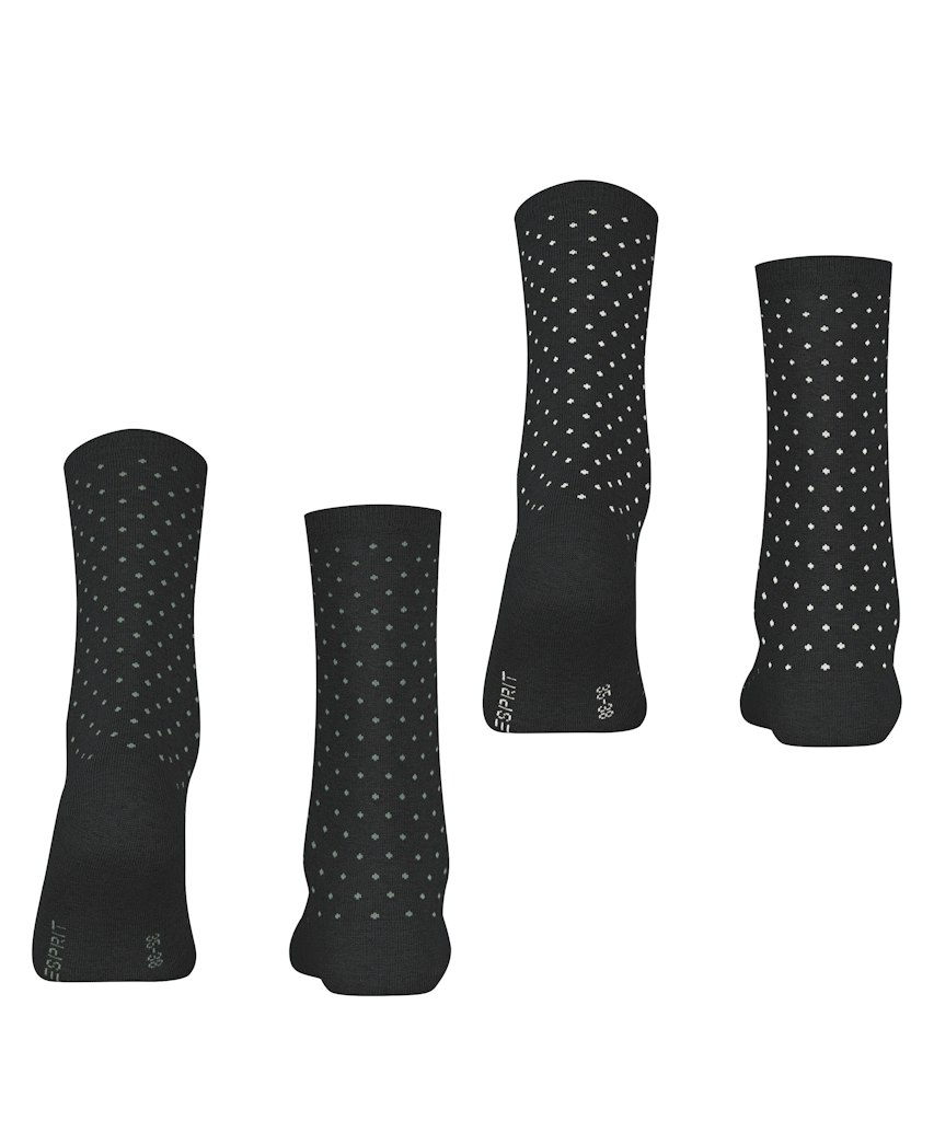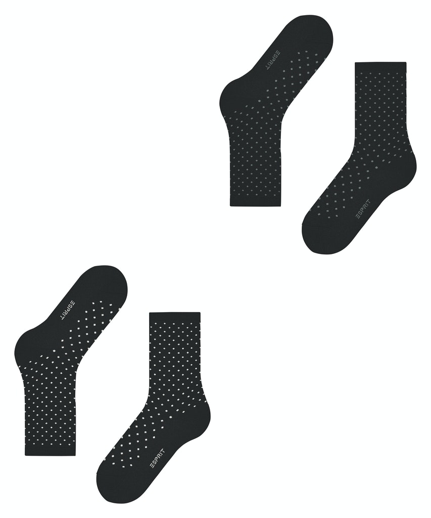 Diese Socken mit femininem Pünktchenmuster und einem elastische Bündchen peppen jeden schlichten Schuh auf. Die zwei gleich gemusterten Socken mit farblich unterschiedlichen Punkten sind im Doppelpack erhältlich und ein echter Allrounder. Aus hochwertiger Bio-Baumwolle gestrickt.