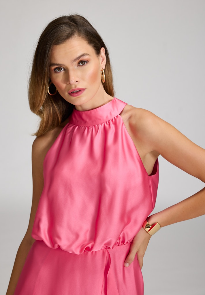 Cocktail Kleid aus nachhaltigem Satin mit Volant am Saum