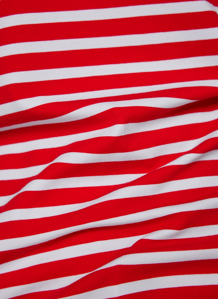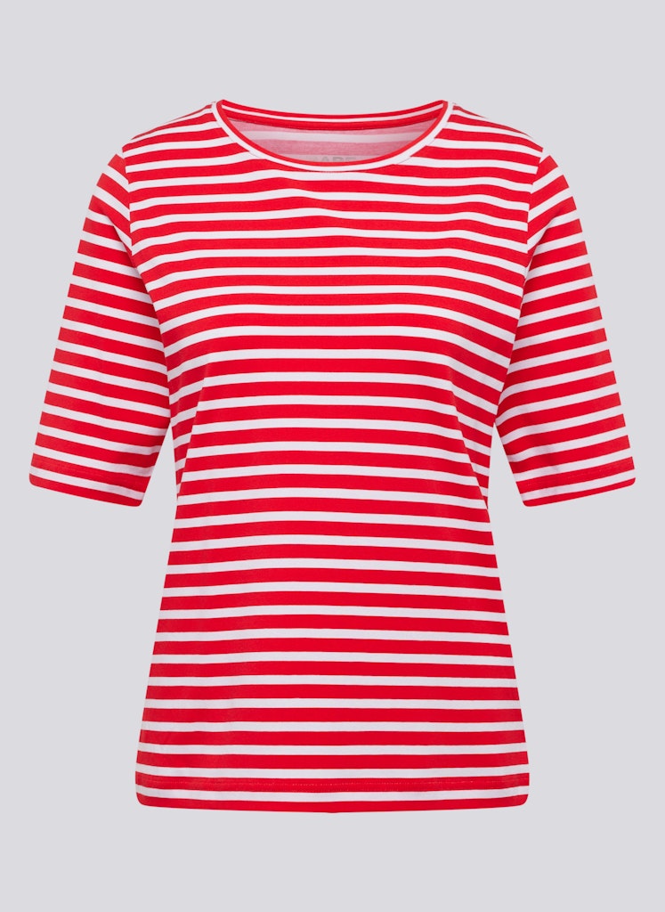 Die klassische Ringeloptik verleiht dem Shirt einen maritimen Look, der sowohl sportlich als auch zeitlos elegant wirkt. Der Rundhalsausschnitt und die halblangen Ärmel sorgen für einen angenehmen Sitz und hohen Tragekomfort.Zeitloses Streifendesign in kräftigem Rot und Weiß.Angenehm weiches Material mit Stretchanteil. Perfekt für Freizeit, Urlaub oder den City-Look.Ideal kombinierbar mit Jeans, Leinenhosen oder Röcken.