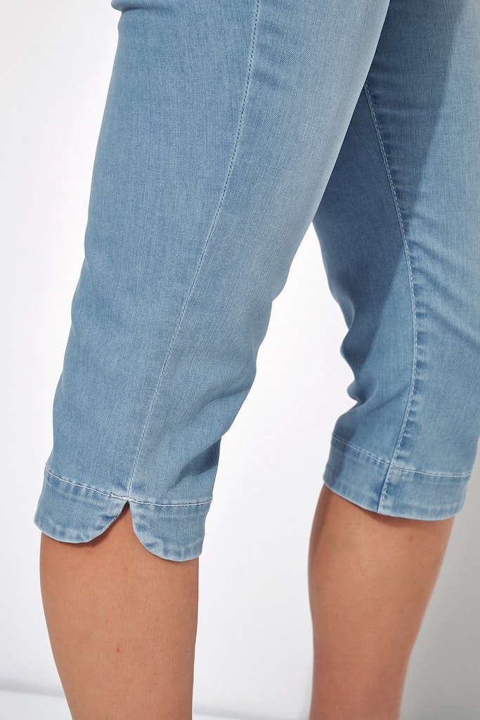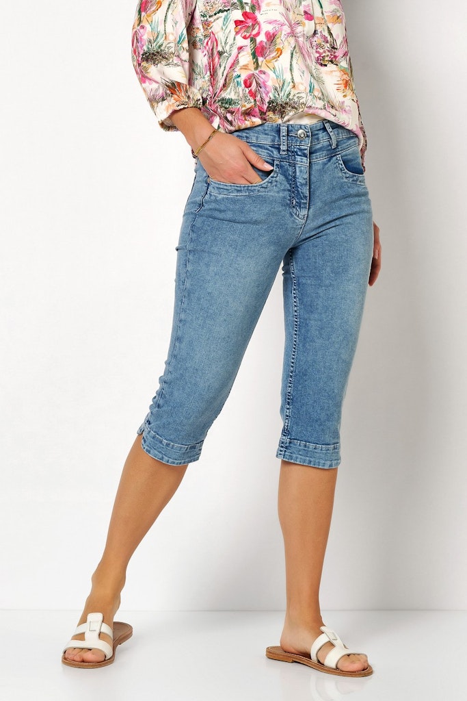 Damenjeans be loved Capri - Mid Blue Used - Qualität: - Slim Fit-Hose mit schmalem Oberschenkel - Komfortable Taille und höhere Leibhöhe - Elastischer Dehnbund für ein angenehmes Tragegefühl