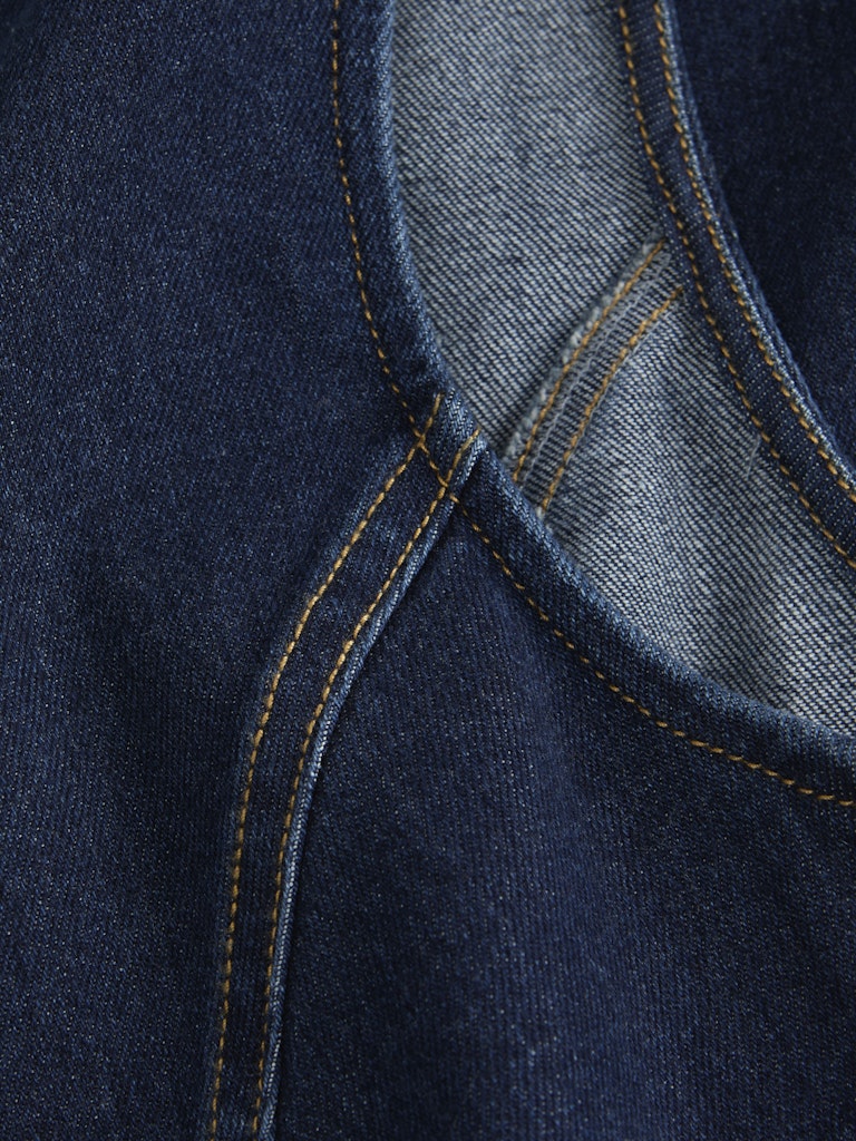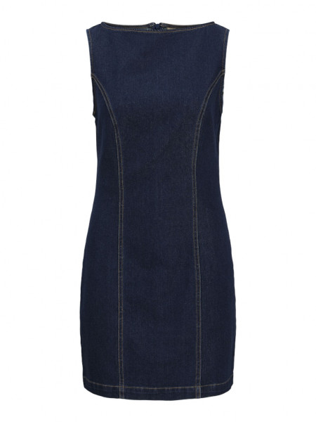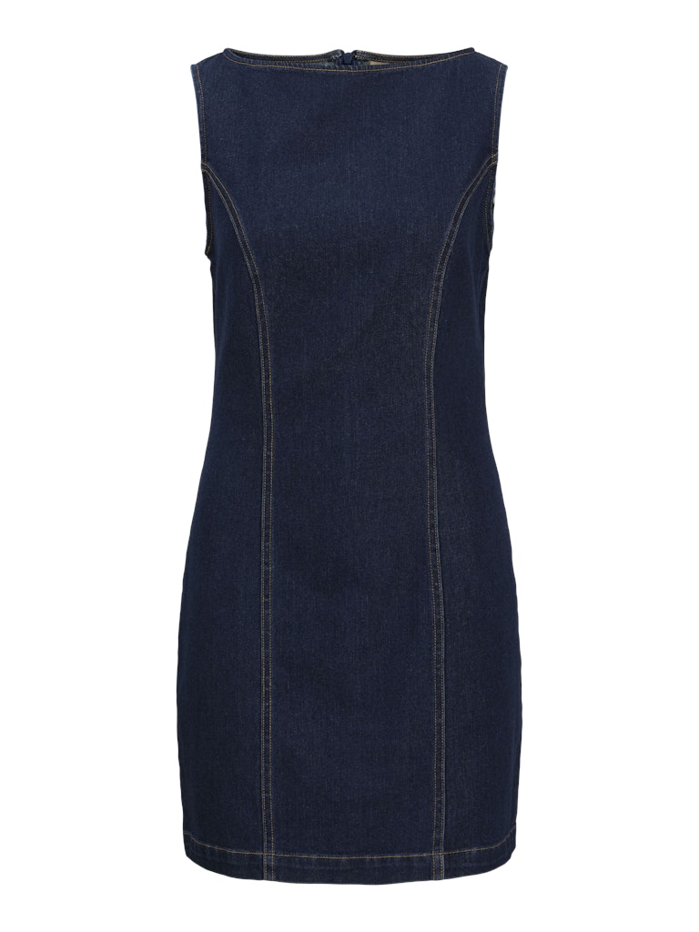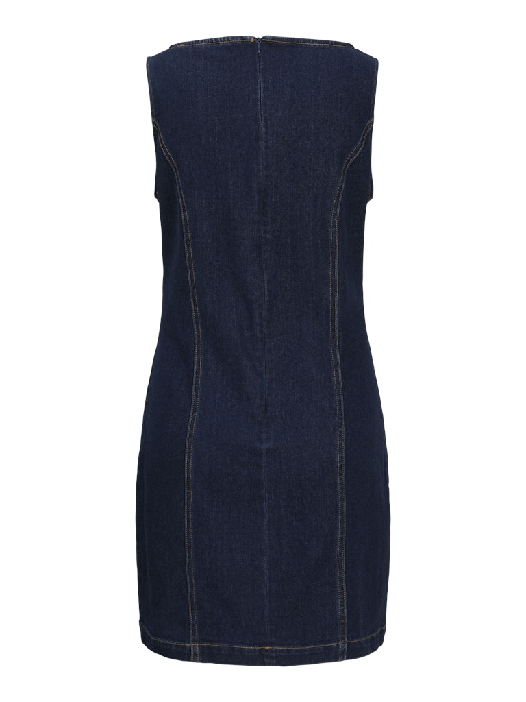 Denim ist ein robustes Köpergewebe aus gefärbten Kettfäden und ungefärbten Schussfäden. - Produkttyp : Jeanskleid - Hals : Rundhals - Ärmel : Ohne Ärmel - Verschluss : Reißverschluss - Länge/Größe : Mini-Länge - Waschen : Rinse Wash zum Entfernen überschüssiger Farbe für ein weiches Tragegefühl und den originalen Jeanslook - Passform : Slim Fit