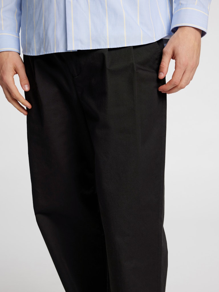 Es ist Zeit für einen sportlich eleganten Look und diese Bundfaltenhose ist genau das Richtige dafür. Sie kombiniert klassisches Tailoring mit dem Komfort von Freizeitkleidung und ist perfekt für etwas weniger formelle Anlässe. Kombiniere sie mit einem Oxfordhemd, einem einreihigen Blazer und Segelschuhen aus Leder.- Mid Waist- Hosenschlitz mit Reiß- und Knopfverschluss- Gürtelschlaufen- Bundfalten-Detail am linken Bein- Enthält Leinen- Loose FitENTHÄLT BIO-BAUMWOLLEDas Hauptmaterial dieses Produkts besteht zu mindestens 50% aus Bio-Baumwolle. Bio-Baumwolle wird ohne schädliche Chemikalien angebaut. Der Anbau von Bio-Baumwolle schont die natürlichen Ressourcen und schützt die Artenvielfalt.
