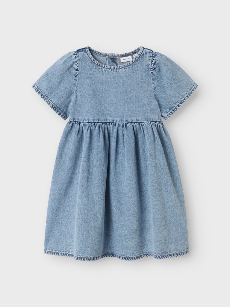 Bringe neues Leben in die Garderobe deines Kindes mit hübschen und coolen Kleidern für jede Saison und jeden Anlass. Denim ist ein robuster Webstoff, der in vielen verschiedenen Designs erhältlich ist und einen einzigartigen Look schafft.- Produktart: Kleid- Verschluss : Knopfverschluss mit Schlaufe- Ausschnitt : U-Ausschnitt- Ärmel : Kurze Ärmel- Weitere Details: Falten