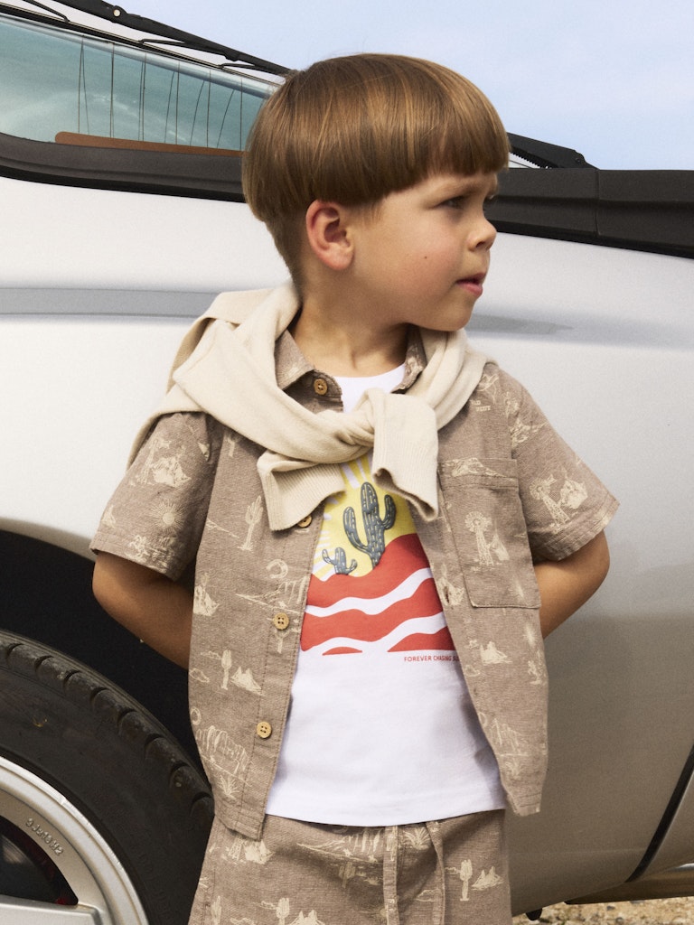 Aktualisiere die Garderobe deines Kindes mit coolen Oberteilen, die perfekt für den Alltag und besondere Anlässe sind. Jersey ist ein leichter und dehnbarer Stoff mit einer weichen Außen- und Innenseite und sorgt für ein angenehmes Tragegefühl und Bewegungsfreiheit.- Produktart: Oberteil- Print : Schaumprint für einen bauschigen Effekt und 3D-Look- Print : Weicher Gummiprint- Ausschnitt : Rundhalsausschnitt- Ärmel : Kurze Ärmel- Stoff: Jersey- Passform : Regular Fit