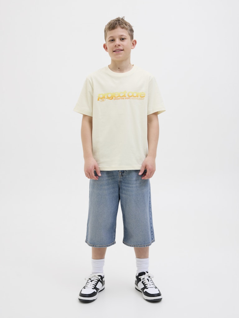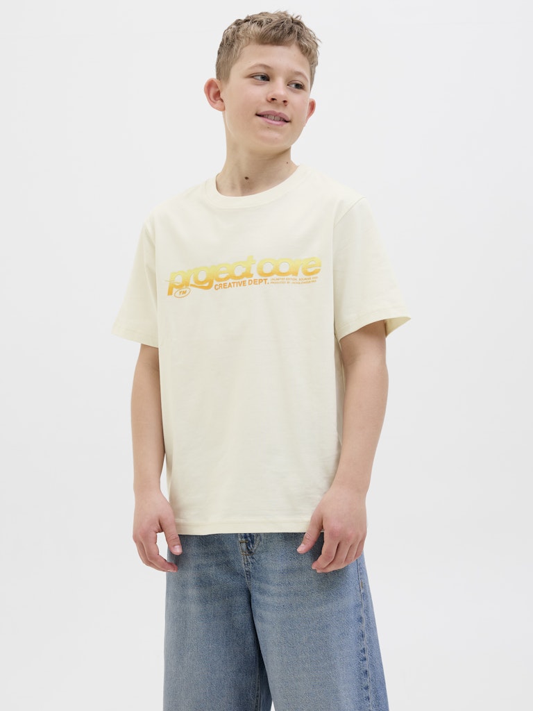 Nichts ist so unkompliziert wie ein T-Shirt. Es passt einfach zu allem in deinem Kleiderschrank.Gekämmtes Jerseygewebe ist dehnbar, fühlt sich weich an und ist perfekt für den Alltag.Entdecke die aufregende Welt von Jack and Jones Junior, in der Mode durch jugendliche Energie und lebhaften Charme zum Leben erweckt wird. Unsere Kollektionen bieten eine Mischung aus neuen, trendigen Designs, die Jungen im Alter von 3-16 Jahren ansprechen. Tauche in hochwertige und bequeme Styles ein, die speziell für junge Fashion-Liebhaber entwickelt wurden. Bei Jack and Jones Junior interpretieren wir Mode für Jungs im Alter von 3 bis 16 neu, indem wir coole Passformen und moderne Styles kombinieren und dabei immer wieder Elemente aus der Erwachsenenmode einfließen lassen.. - Produkttyp : T-shirt - Hals : Rundhalsausschnitt - Ärmel : Kurzarm - Print : Gummidruck für Weichheit - Körperform : Junior - Passform : Locker geschnitten