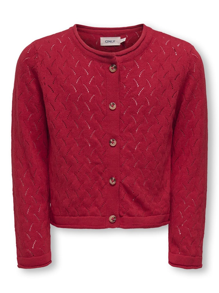 Flachstrick ist eine Strickart, die sich durch ihre Flexibilität, ihren Komfort und ihr sauberes Aussehen auszeichnet.KIDS ONLY ist ein Modelabel für coole Kinder. Entdecke eine Welt, die voller Must-haves aus Denim, cooler Streetwear und stylisher Favoriten steckt. - Produkttyp : Strickjacke - Hals : Rundhals - Ärmel : Langarm - Ärmel : Tief angesetzte Schulter - Verschluss : Knopfleiste - Passform : Locker geschnitten - Achtung : WARNUNG! Von Feuer fernhalten.