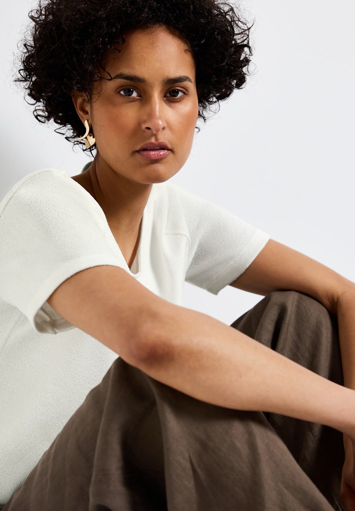 Dieses Sommershirt von Street One für Damen punktet mit einem soften Materialmix und einer angesagten Strick-Optik. Der U-Boot-Ausschnitt und die kurzen Ärmel verleihen dem Shirt eine feminine Note, während seitliche Schlitze für eine lässige Passform sorgen. Sommershirt U-Boot-Ausschnitt Kurzarm Seitliche Schlitze Angenehmer Materialmix Material: 56% Polyester, 44% Viskose