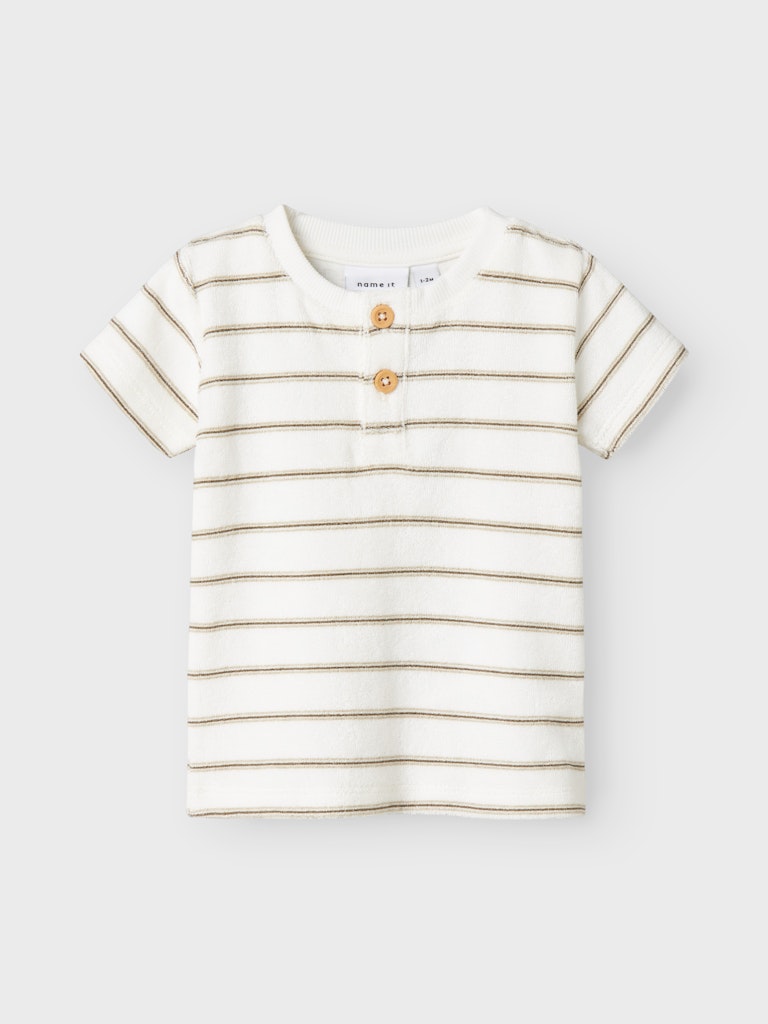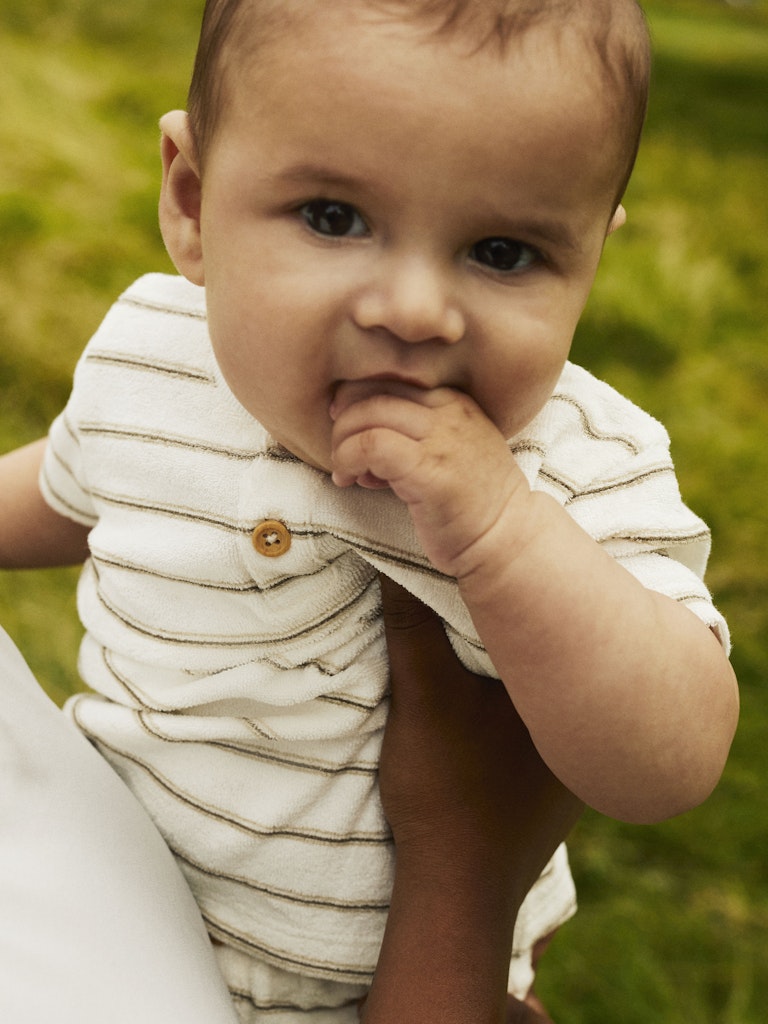 Aktualisiere die Garderobe deines Kindes mit coolen Oberteilen, die perfekt für den Alltag und besondere Anlässe sind. Frottee ist ein weicher Stoff mit hochgezogenen Schlaufen, einem angenehmen Tragegefühl und hoher Saugfähigkeit.- Produktart: Oberteil- Verschluss : Knopfverschluss- Ausschnitt : Grandad-Kragen- Ärmel : Kurze Ärmel- Stoff: Frottee- Passform : Regular Fit- Achtung : WARNHINWEIS! Von Feuer fernhalten