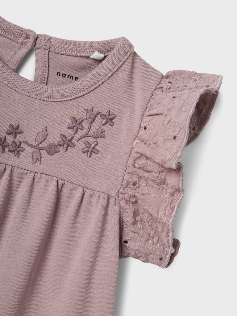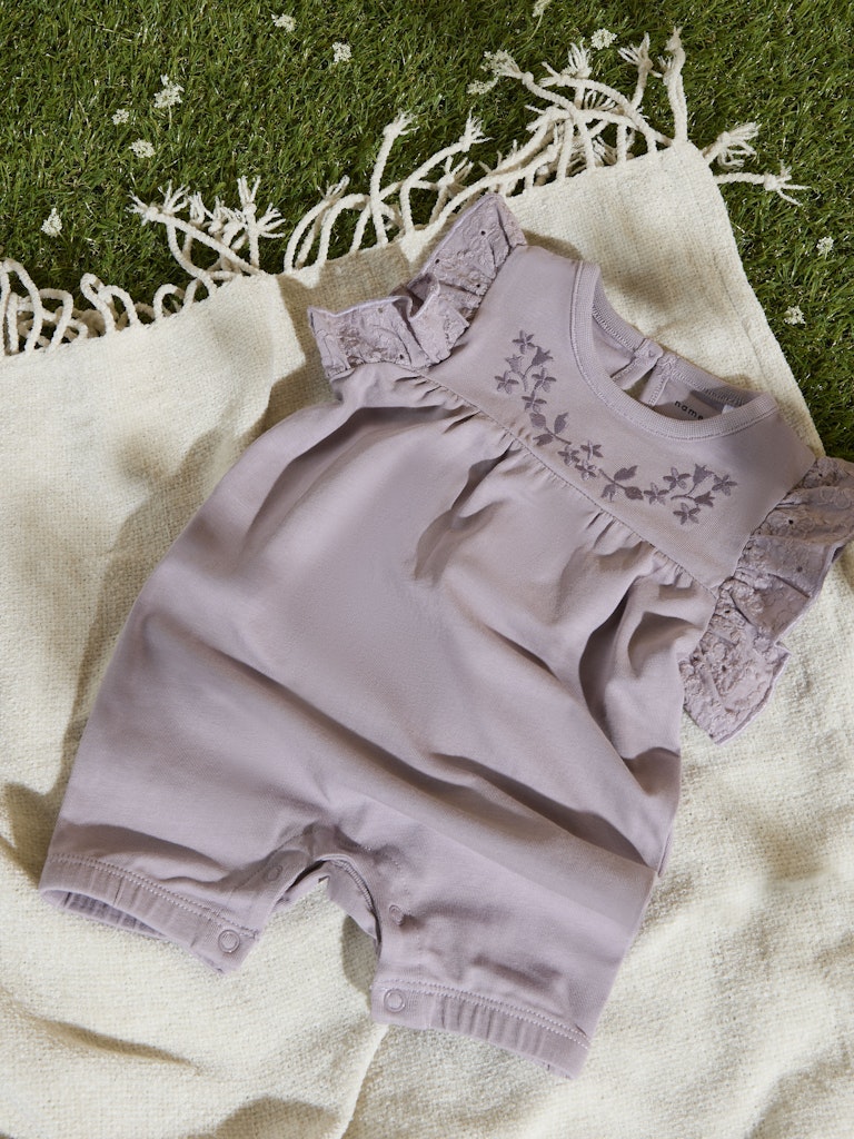 Kreiere mit hochwertigen Alltagsstyles das perfekte Outfit für dein Kind, das nicht nur bequem, sondern auch super trendy ist. Jersey ist ein leichter und dehnbarer Stoff mit einer weichen Außen- und Innenseite und sorgt für ein angenehmes Tragegefühl und Bewegungsfreiheit.- Produktart: Sunsuit- Verschluss : Druckknopfverschluss- Weitere Details: Stickerei- Stoff: Jersey- Achtung : WARNHINWEIS! Von Feuer fernhalten