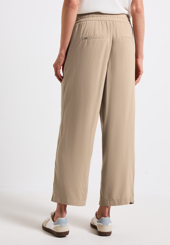 Diese Wide Leg Hose von Street One für Damen kombiniert einen entspannten Loose Fit mit einer femininen High Waist. Seitliche Taschen und der elastische Bund mit Tunnelzug sorgen für einen lässigen Look und hohen Tragekomfort. Die leichte Viskose-Qualität macht sie zum perfekten Begleiter für luftige, stilvolle Sommeroutfits. Loose Fit Hose High Waist und Wide Legs Seitliche Taschen Elastischer Bund mit Tunnelzug Leichte Viskose-Qualität Material: 100% Viskose
