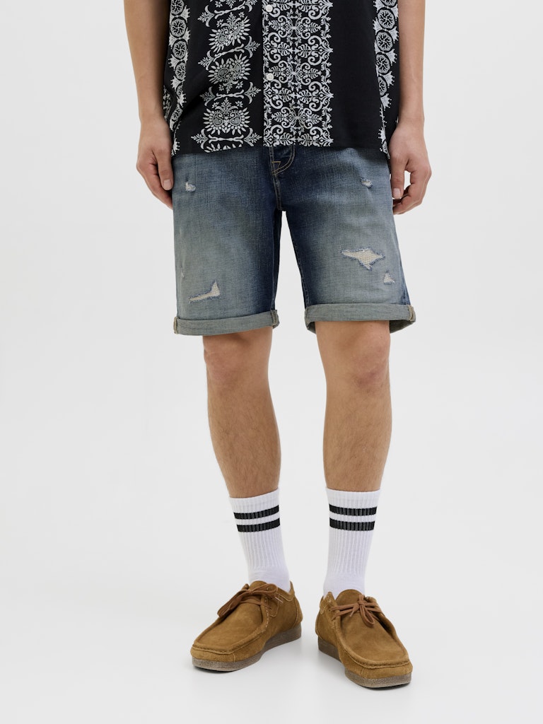 Original ist eine klassische Five-Pocket-Jeans: zeitlos, unkompliziert und so, wie man sie seit den Anfängen kennt - das macht sie zu etwas auf das man sich verlassen kann, wie es eine gute Jeans sein sollte.Denim ist ein robustes Köpergewebe aus gefärbten Kettfäden und ungefärbten Schussfäden. - Produkttyp : Regular Fit Shorts - Verschluss : Reißverschluss - Taschen : Gesäßtaschen, Münztasche, Taschen vorn - Taille : Mid Rise - Waschen : Kleine Risse bzw. Löcher mit Repairs - Passform : Regular Fit mit mittelhohem Bund, geradem Bein und normaler Beinöffnung