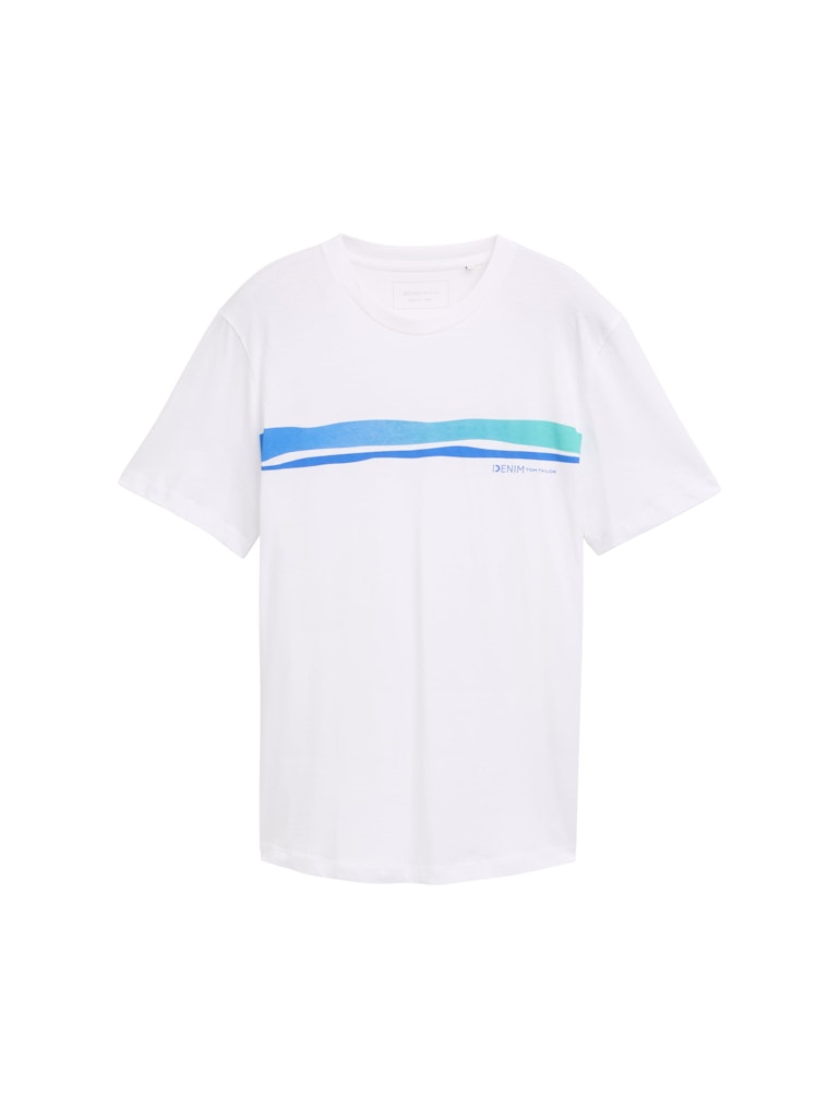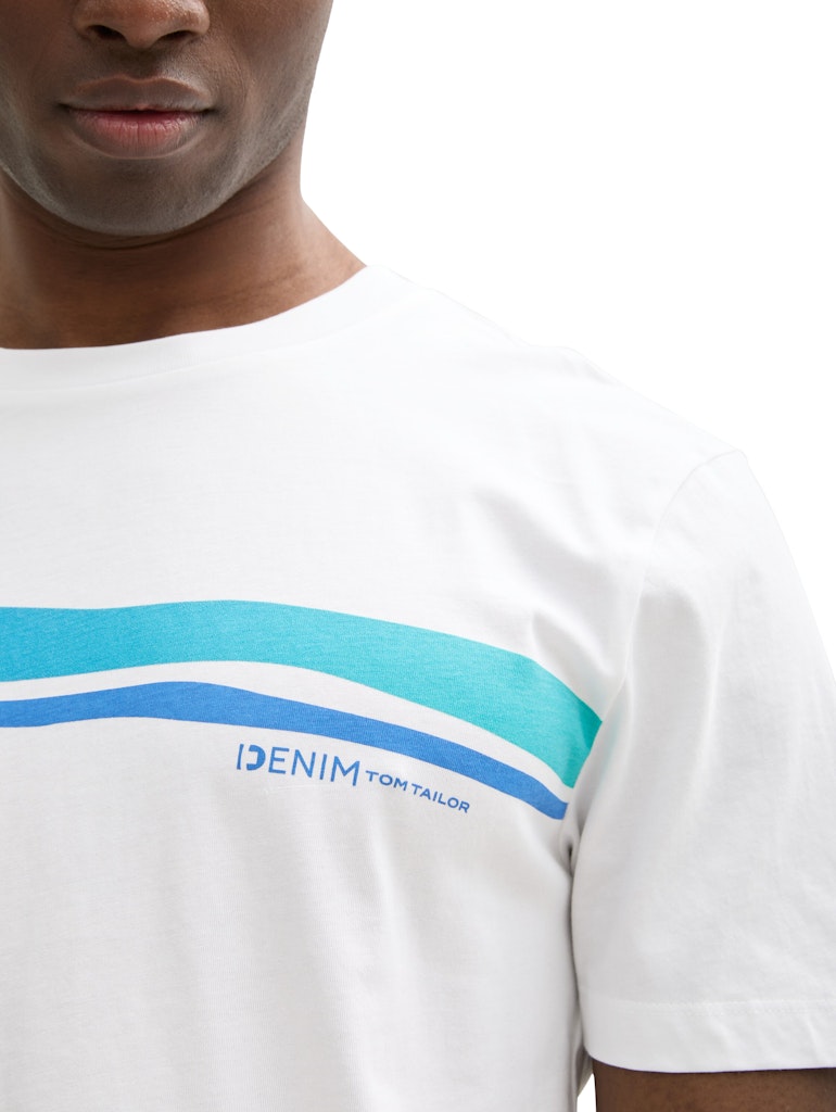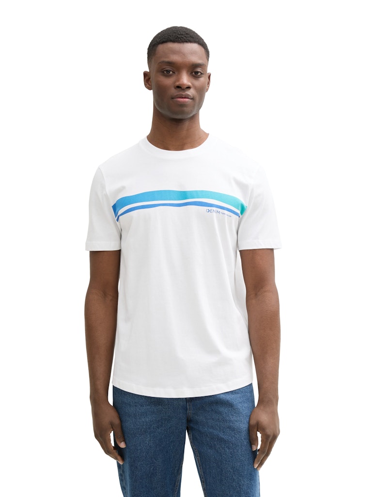 * T-Shirt mit gestreiftem Print auf der Brust. Aus einem Single-Jersey-Stoff aus Baumwolle.