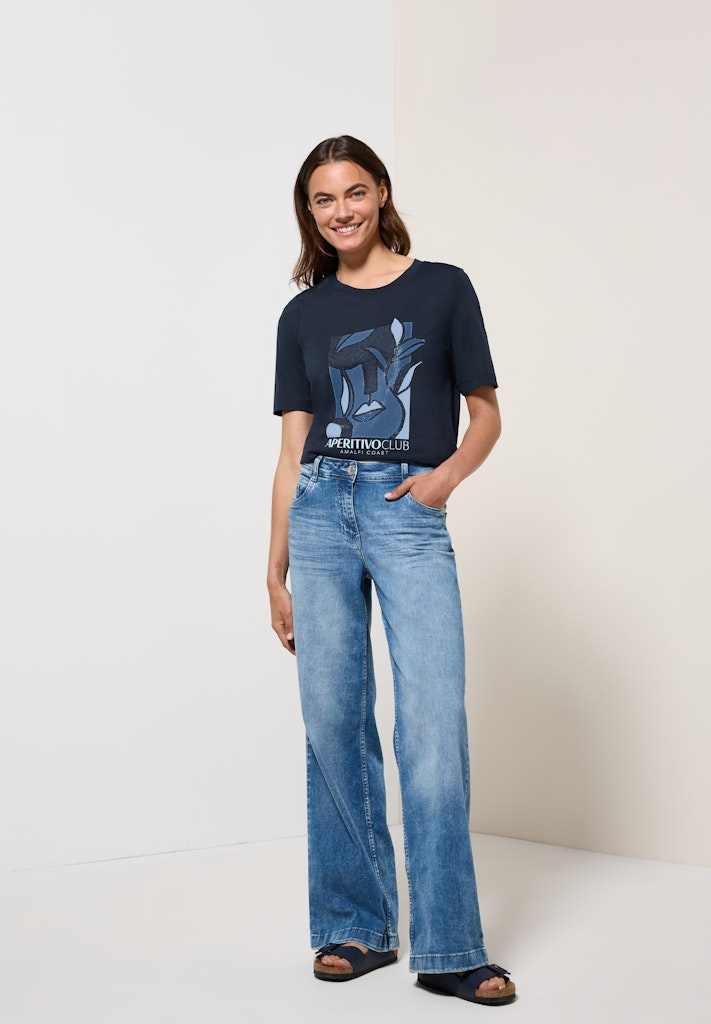 Das Shirt von CECIL für Damen begeistert mit grafischem Print mit Dekosteinen, einem Rundhalsausschnitt und klassischem Kurzarm. Der softe Baumwoll-Modalmix sorgt für ein angenehm leichtes Tragegefühl. Ein unkomplizierter Stylingpartner für deinen Alltag. T-Shirt Rundhalsausschnitt Kurzarm Seitliche Schlitze Softer Baumwoll-Modalmix Modisches Artwork mit Dekosteinen Material: 50% Baumwolle, 50% Modal