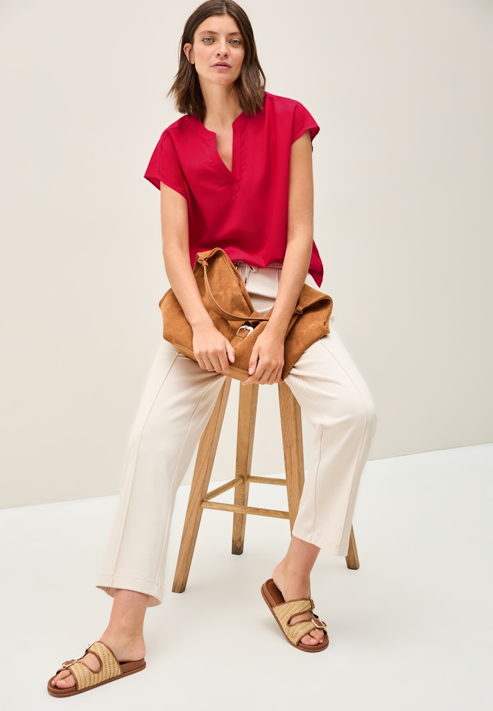 Dieses Blusenshirt von CECIL für Damen überzeugt mit seinem geschlitzten Ausschnitt und lässigen Dropped Shoulders. Die weiche Viskose sorgt für ein angenehmes Tragegefühl. Ein vielseitiger Allrounder für jeden Tag. Bluse Geschlitzter Ausschnitt Dropped Shoulders Vielseitiger Allrounder Weiche Viskose Material: 100% Viskose