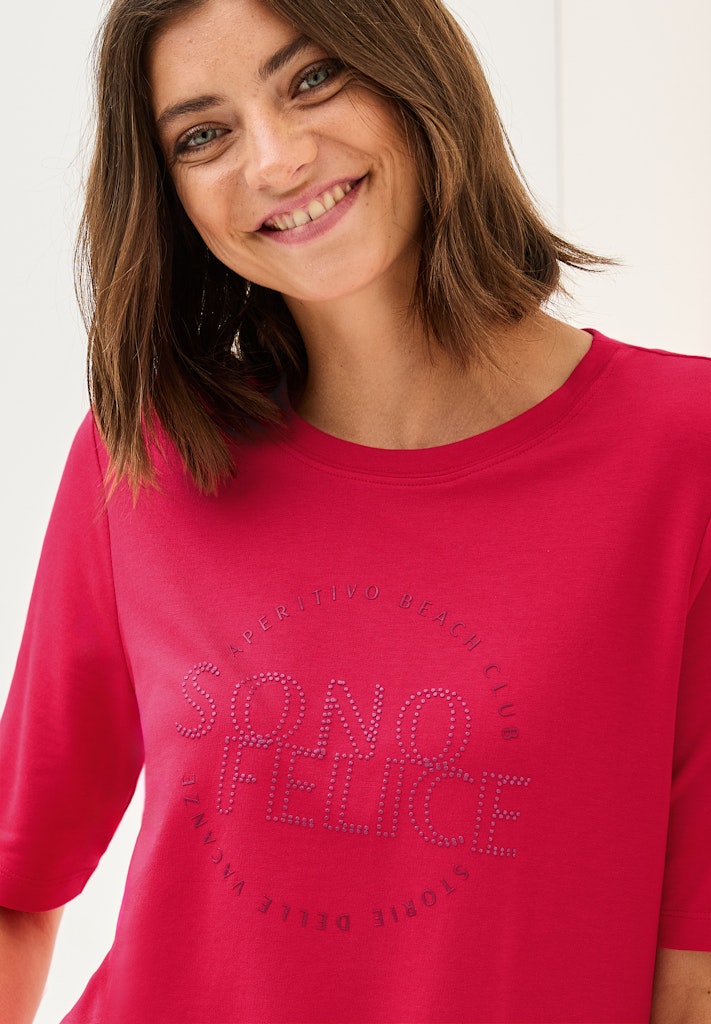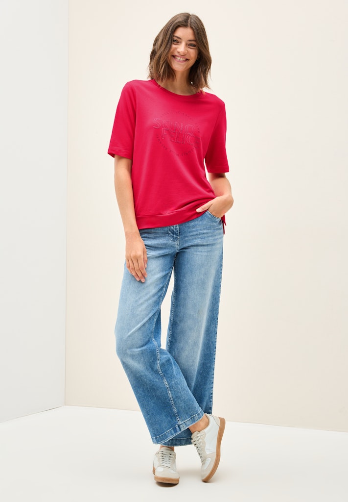 Dieses Shirt von CECIL für Damen punktet mit seinem Wording Artwork und einem hohen Tragekomfort. Kurze Ärmel und ein Rundhalsausschnitt sorgen für einen sommerlichen Fit, während der softe Baumwoll-Modalmix mit Stretchanteil besonders angenehm auf der Haut liegt. T-Shirt Rundhalsausschnitt Kurzarm Wording Artwork Softer Baumwoll-Modalmix mit Stretchanteil Material: 48% Baumwolle, 48% Modal, 4% Elasthan