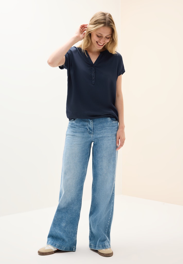 Dieses leichte Blusenshirt von CECIL für Damen punktet mit schlichter Unifarbe, geschlitztem Ausschnitt und dekorativer Knopfleiste. Der elastische Saum und die weiche Viskose machen es zum gemütlichen Allrounder. Ideal für Alltag und Freizeit. Leichte Bluse Geschlitzter Ausschnitt mit dekorativer Knopfleiste Dropped Shoulders Elastischer Saum Weiche Viskose Material: 100% Viskose