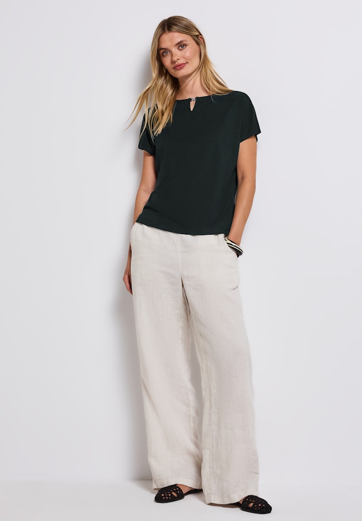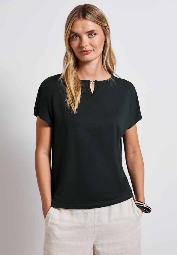 Das unifarbene Shirt von Street One für Damen punktet mit einem dekorativen Cut-Out am U-Boot-Ausschnitt. Der Viskosemix mit Stretchanteil bietet dir ein geschmeidiges Tragegefühl, während die Dropped Shoulders eine moderne Note setzen. Ideal für minimalistische Sommer-Looks. Sommershirt U-Boot-Ausschnitt mit Cut-Out Dropped Shoulders Unifarbe Viskosemix mit Stretchanteil Material: 95% Viskose, 5% Elasthan