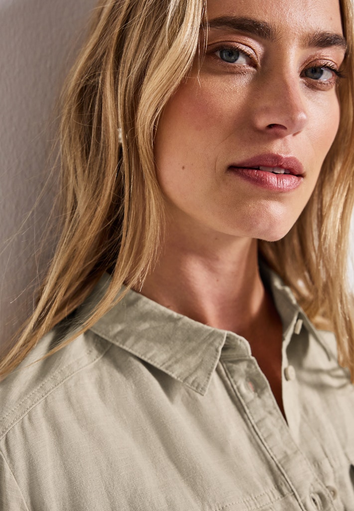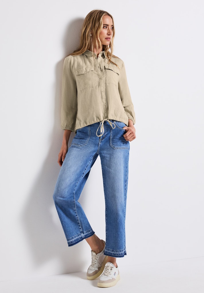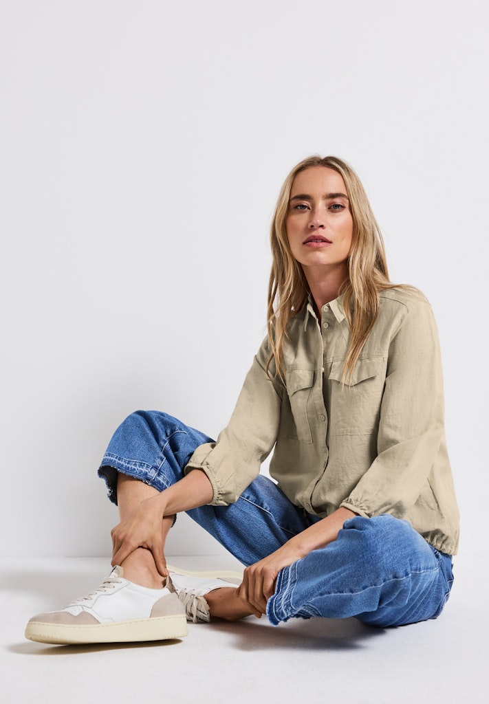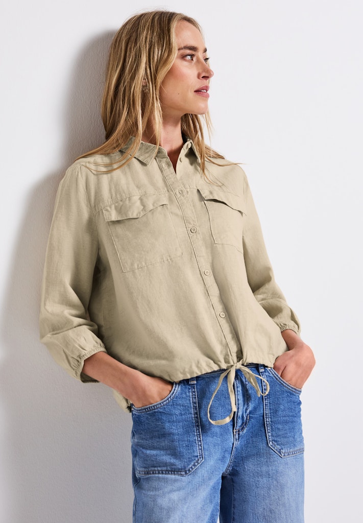 Diese sommerliche Hemdbluse von Street One für Damen punktet mit Brusttaschen und einem legeren Hemdkragen. Die 3/4-Ärmel mit elastischen Bündchen und der elastische Saum mit Tunnelzug sorgen für einen lässigen Sitz. Der weiche Leinen-Baumwollmix macht sie zu einem angenehmen Begleiter an warmen Tagen. Sommerbluse mit Brusttaschen Hemdkragen und Knopfleiste 3/4-Ärmel mit elastischen Bündchen Elastischer Saum mit Tunnelzug Weicher Leinen-Baumwollmix Material: 60% Leinen, 40% Baumwolle