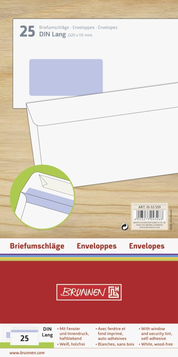 Brunnen 1053559 Briefumschlag DIN Lang mit Fenster, 25 Stück