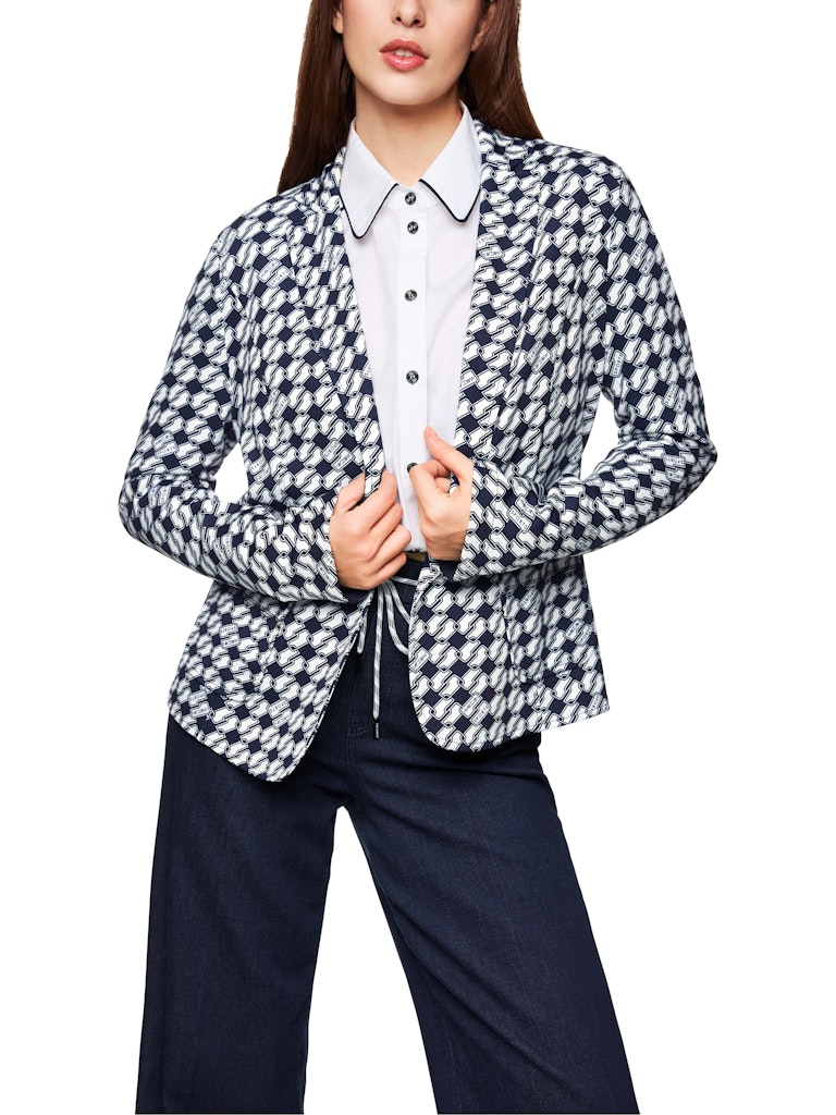 Bedruckter Blazer|Der taillierte Blazer begeistert durch den einzigartigen Cube-Alloverprint. Das Scubamaterial sogt für höchsten Tragekomfort. Der sportliche Blazer kommt mit gerundetem Saum und kann mit zwei Knöpfen geschlossen werden.|Taillierte Form|Gerundeter Saum|Mit zwei Knöpfen|Aufgesetzte Taschen|Das Model ist 179 cm groß und trägt N3/38.