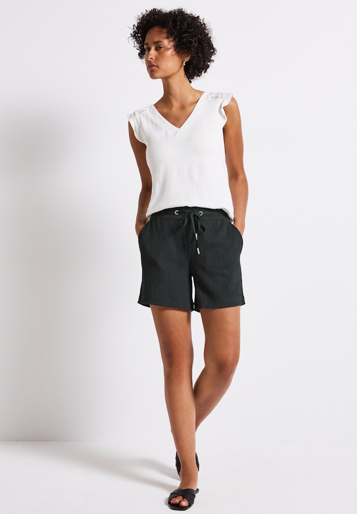 Die Strukturshorts von Street One für Damen sind ein luftiger Sommerbegleiter im Loose Fit. Der elastische Tunnelzugbund sorgt für entspannten Sitz, während seitliche Taschen lässige Details ergänzen. Der Materialmix mit Stretchanteil bietet ein angenehmes Tragegefühl bei warmem Wetter. Kurze Hose im Loose Fit Mid Waist Seitliche Taschen Elastischer Bund mit Tunnelzug Materialmix mit Stretchanteil Material: 59% Polyester, 40% Viskose, 1% Elasthan