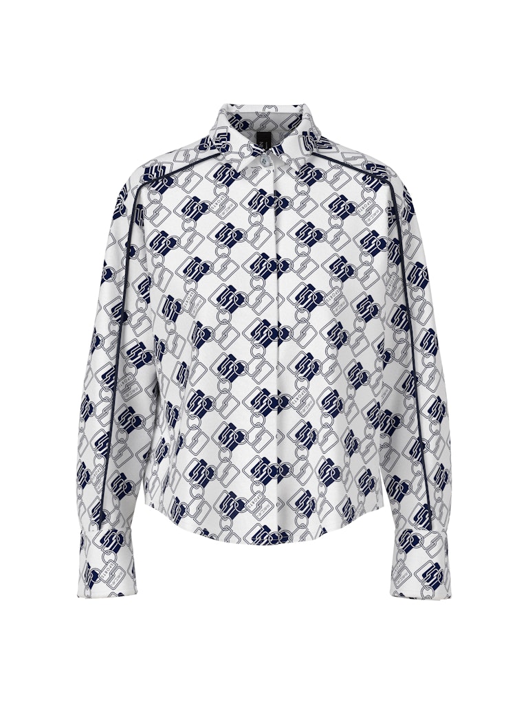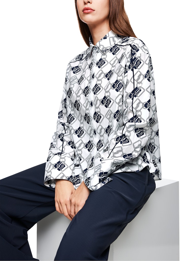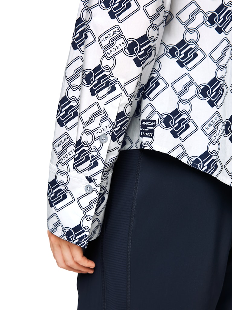 Bedruckte Bluse|Die bedruckte Bluse ist aus 100 % Baumwolle gefertigt. Der Allover-Print im neuen Cube-Design setzt die Bluse mit Kragen perfekt in Szene. Die verdeckte Knopfleiste, kleine Paspeln und breite Einknopf-Manschetten vervollkommnen den Look.|Weiter Schnitt|100 % Baumwolle|Verdeckte Knopfleiste|Gerundeter Saum|Das Model ist 179 cm groß und trägt N3/38.