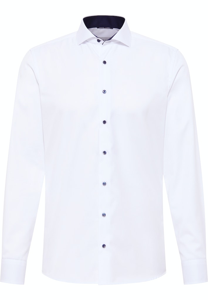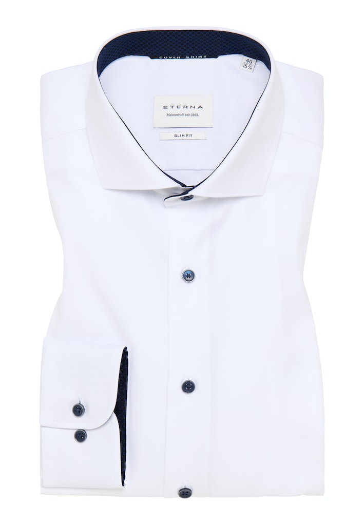 Dieses knitterfreie COVER SHIRT ergänzt perfekt Ihren blauen oder dunkelblauen Anzug.