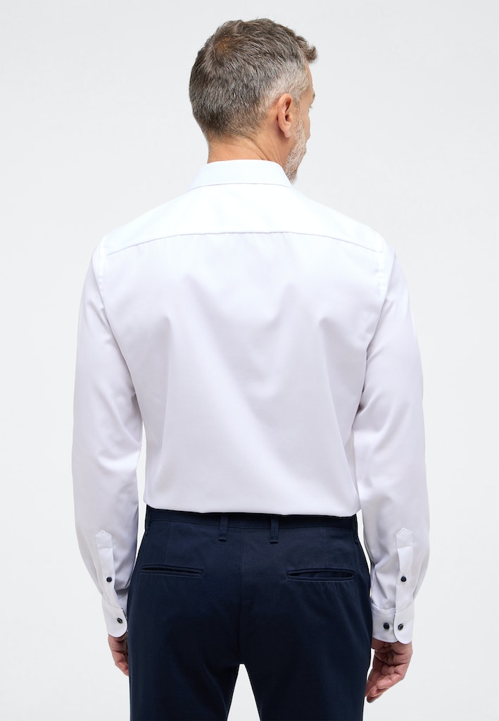 Als Half-Ply-Hemd aus 100% Baumwolle (Twill, bügelfrei) bietet das blickdichte COVER SHIRT exzellenten Tragekomfort.