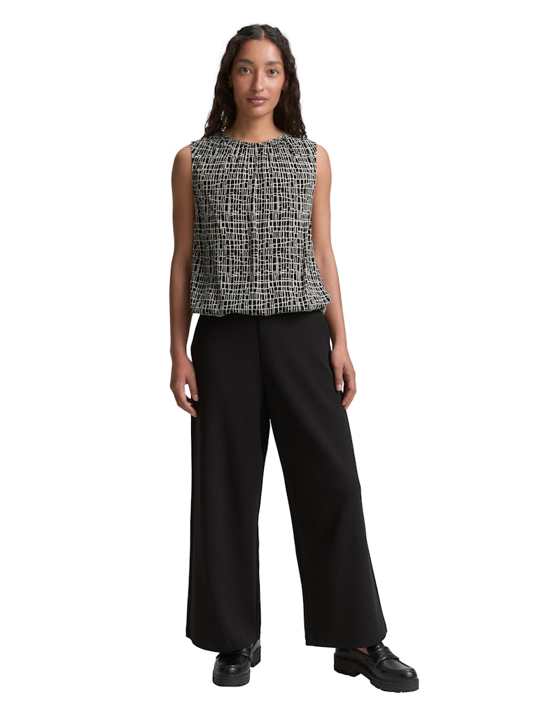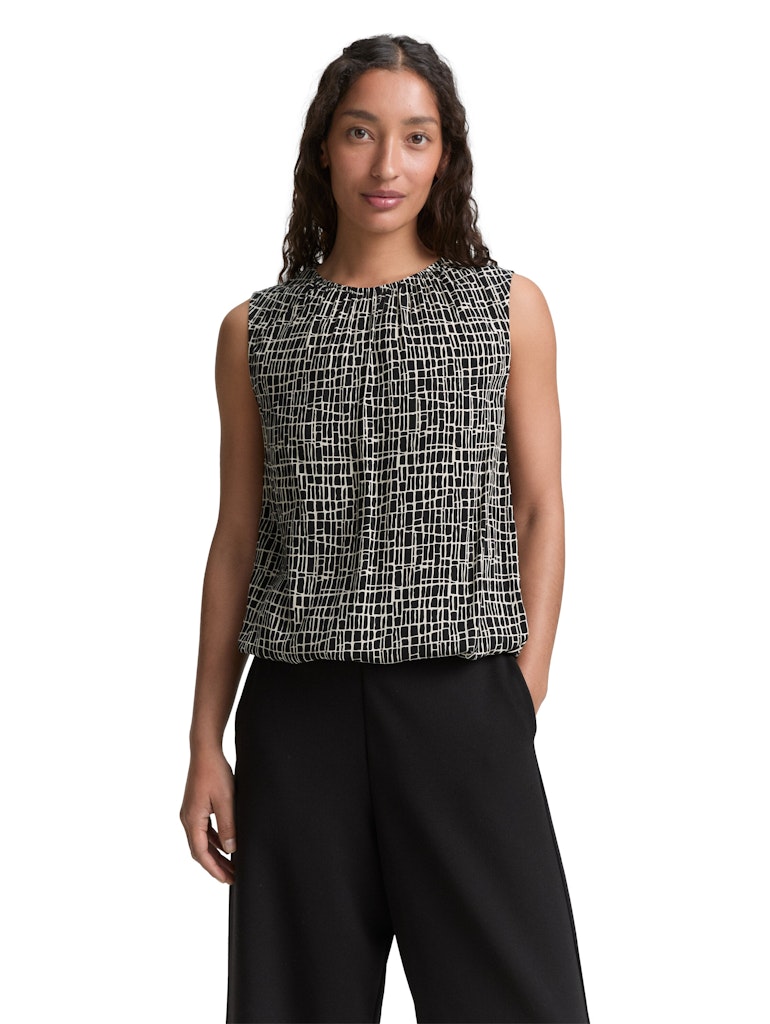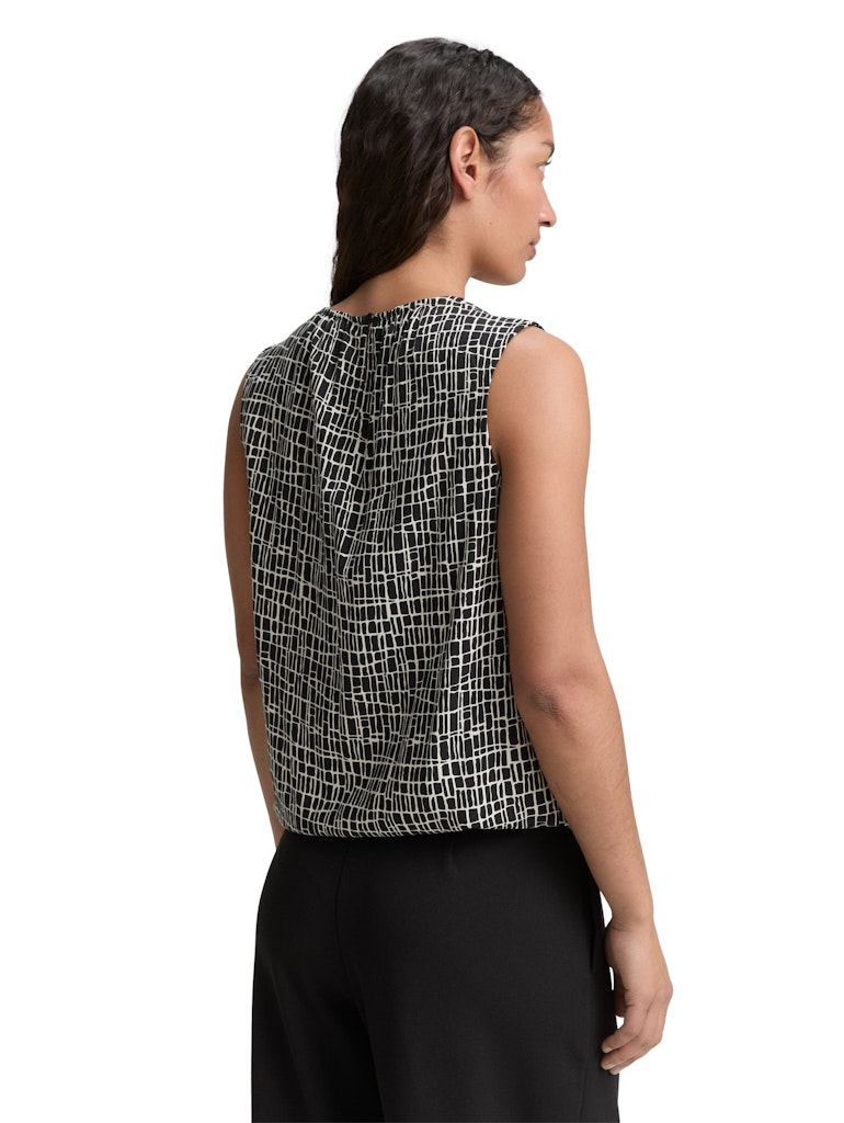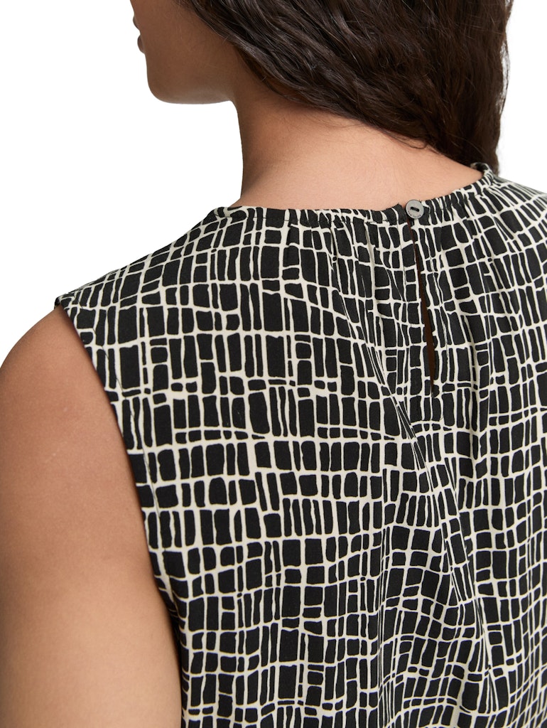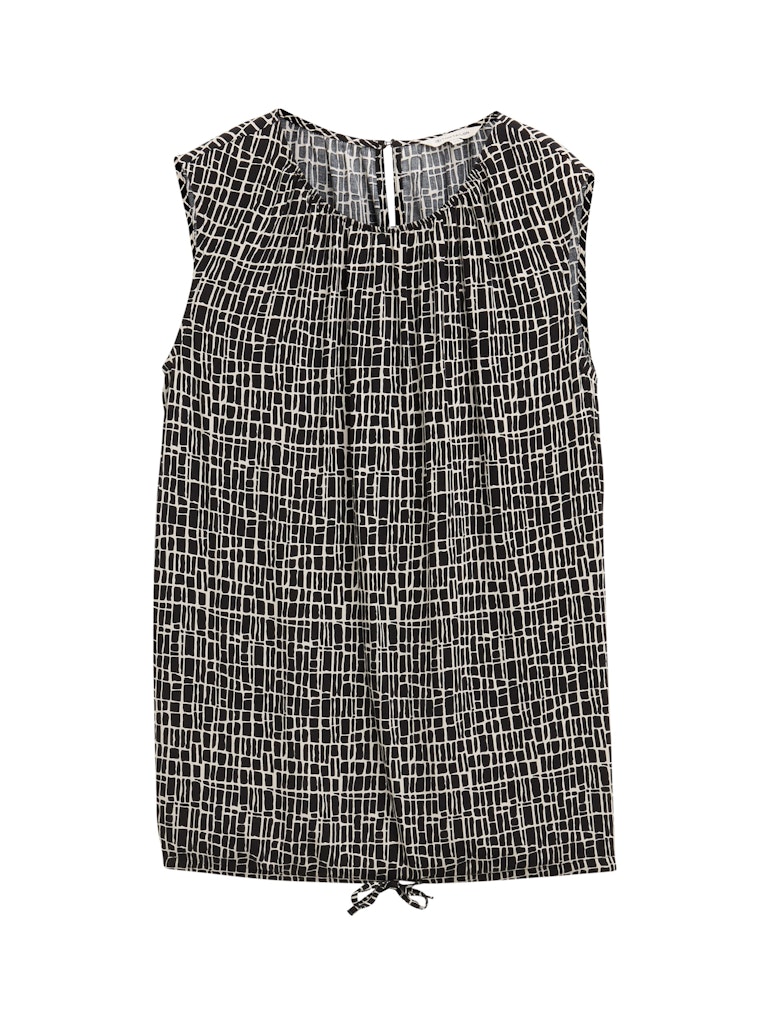* Gemustertes Top aus fließender Viskose mit Kordelzug am Saum und Knop am Kragen hinten