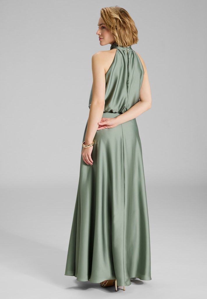 Abendkleid aus nachhaltigem Satin mit amerikanischem Ausschnitt und Beinschlitz