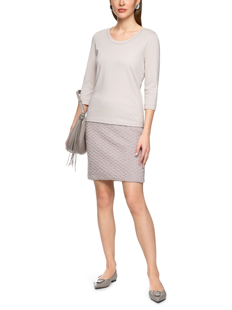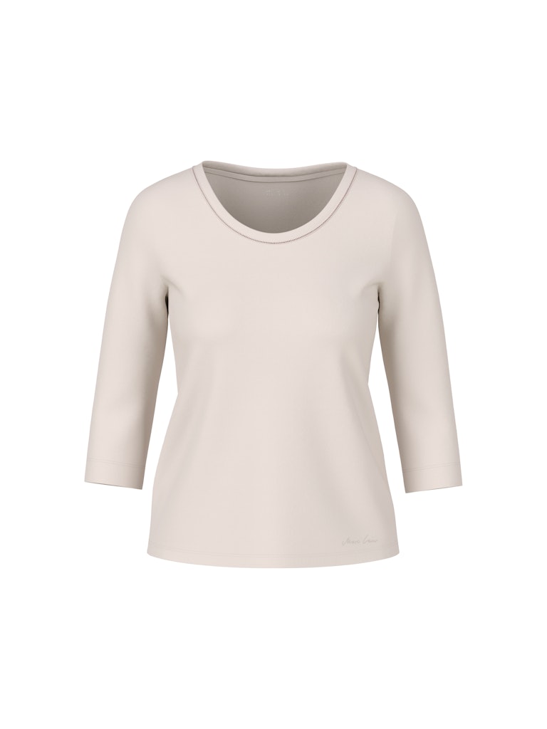 T-Shirt mit Kettenbesatz|Eine edle Ergänzung zu Kostümen und Anzügen ist dieses leicht taillierte T-Shirt. Die Kette Gliederkette am Rundhals sorgt für das gewisse Extra. Die Ärmel sind dreiviertellang. Dank softer Baumwolle mit Elastan-Anteil trägt sich das T-Shirt den ganzen Tag sehr angenehm.|Leichte Taillierung|Dreiviertellange Ärmel|Mit Ketten-Details|Aus angenehmen Baumwolljersey|Das Model ist 179 cm groß und trägt N3/38.