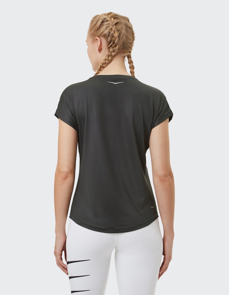 Unser fantastisches T-Shirt BERKELEY von VENICE BEACH aus der Pro Line ist ein absolutes Must-Have für modebewusste Frauen. Mit seinem trendigen Slim-Fit-Schnitt, überschnittenen kurzen Ärmeln und dem stylischen Logo-Print verleiht es deinem Outfit den perfekten modischen Touch. Das hochwertige Sportshirt vereint Funktionalität und Stil, um dir bei jeder sportlichen Herausforderung eine unschlagbare Performance zu bieten. Diese herausragenden Merkmale machen das T-Shirt zum perfekten Begleiter für deinTraining:• Der Rundhalsausschnitt verleiht dem Shirt einen eleganten Look und betont deine feminine Ausstrahlung.• Der gerundete Saum gibt dem T-Shirt einen modernen Twist und sorgt für einen lässigen und stylischen Look.• Durch den Slim-Fit-Schnitt schmiegt sich das T-Shirt perfekt an deine Figur an und betont deine besten Seiten.• Das verwendete Drytivity-Funktionsmaterial hält dich angenehm trocken, indem es Schweiß effektiv nach außentransportiert. So bleibst du auch bei intensiven Workouts frisch und komfortabel.•Dank des Stretchmaterials bietet dir das T-Shirt maximale Bewegungsfreiheit undpasst sich perfekt an deine individuellen Bedürfnisse an.Überzeuge dich selbst von der her