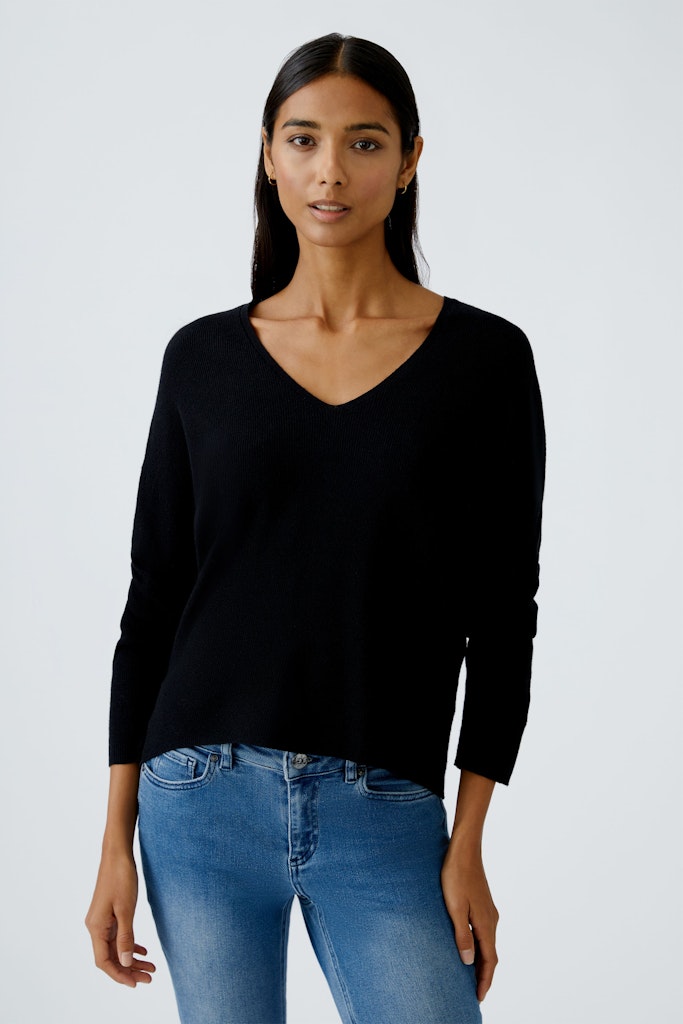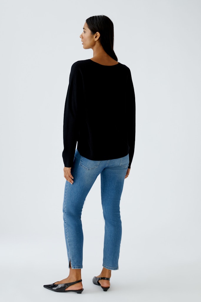Oversized geschnitten, vorne nach oben gerundeter Saum