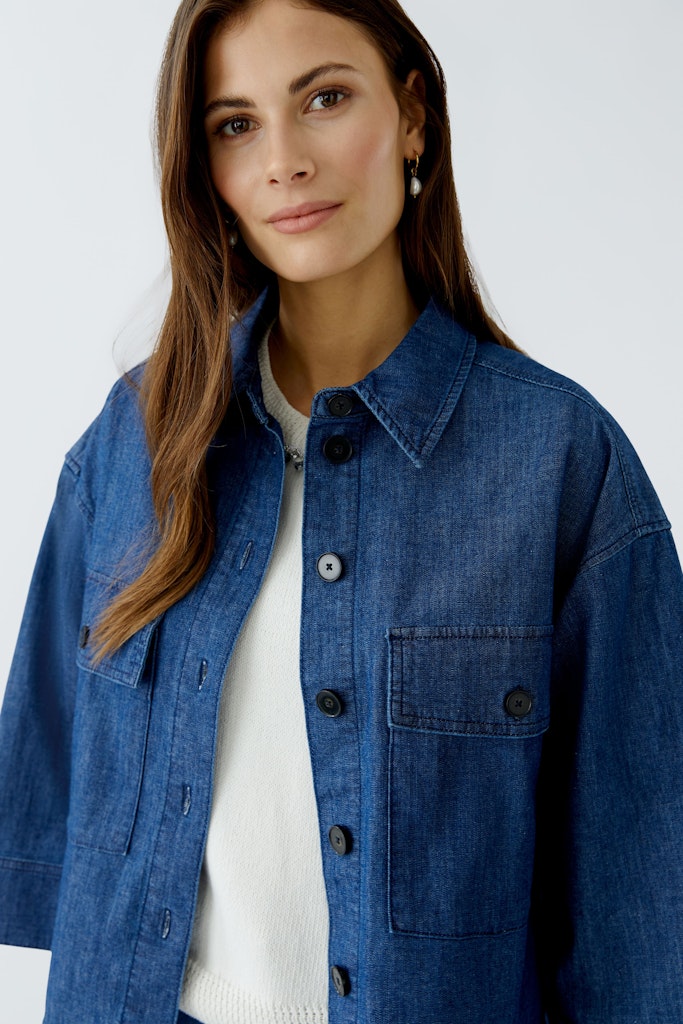 Klassischer Hemdblusenkragen mit durchgehender Knopfleiste