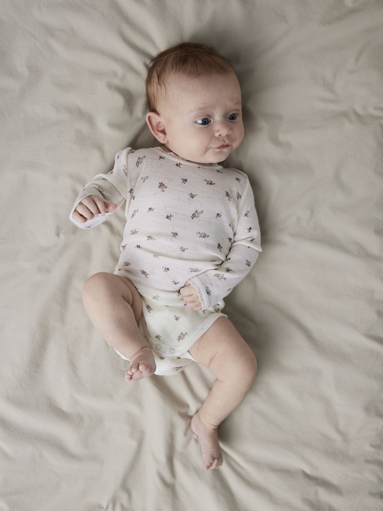 Bring weiche und bequeme Wollsachen in die Garderobe deines Kindes, die das ganze Jahr über für Komfort sorgen. Bei Fallmaschenmustern werden Maschen absichtlich fallen gelassen, um einzigartige Muster und einen süßen Look zu kreieren- Produktart: Body- Verschluss: Druckknöpfe im Schritt bis Größe 86- Print: Print wiederholt sich auf dem gesamten Stoff- Ärmel: Lange Ärmel- Weitere Details: Spitze