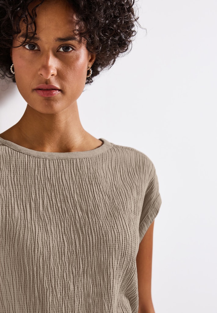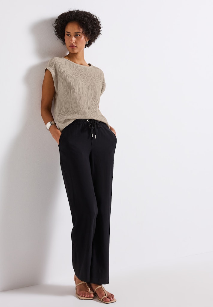 Das Blusenshirt von Street One für Damen setzt mit Tapedetails an den Schultern modische Akzente. Der Rundhalsausschnitt, dropped shoulders und ein elastischer Saum sorgen für eine entspannte Passform. Die leichte Viskosemischung macht das Shirt zum perfekten Begleiter für sommerliche Looks mit sportivem Twist. Damenbluse mit elastischem Saum Rundhalsausschnitt Dropped Shoulders Tapedetails an den Schultern Leichter Viskosemix mit Struktur Material: 60% Viskose, 39% Polyester, 1% Elasthan