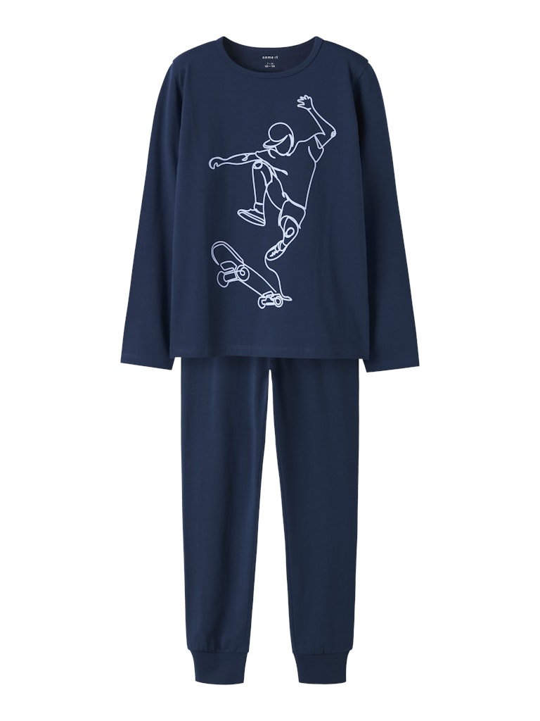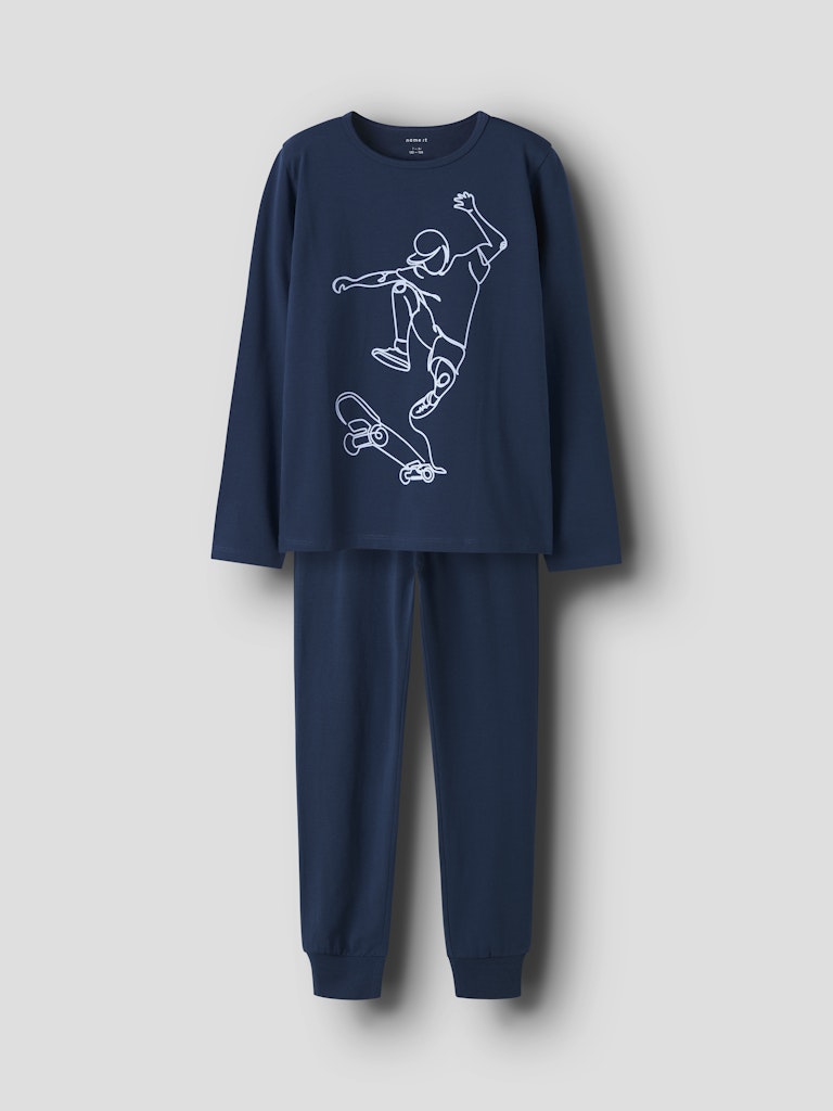 Mach deinem Kind das Zubettgehen leichter mit weicher und cooler Nachtwäsche, die perfekt für erholsamen Schlaf ist. Jersey ist ein leichter und dehnbarer Stoff mit einer weichen Außen- und Innenseite und sorgt für ein angenehmes Tragegefühl und Bewegungsfreiheit.- Produktart: Zweiteiliger Pyjama- Ärmel: Lange Ärmel- Weitere Details: Elastischer Bund- Stoff: Jersey
