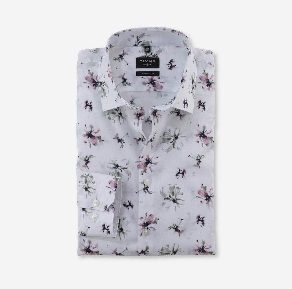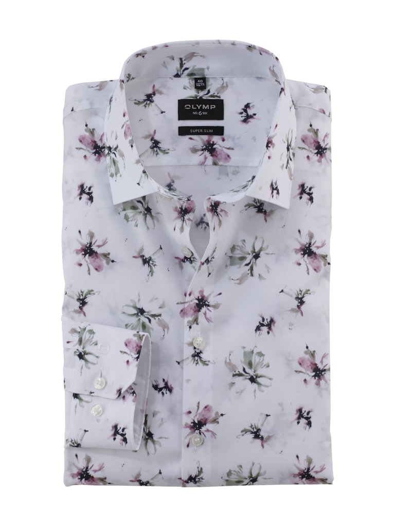 Als Eyecatcher der OLYMP Frühlingskollektion zeigt dieses No. Six ein ikonisches Floral-Dessin auf Weiß. Der superfeine Popeline besticht als beliebte Comfort-Stretch-Qualität und passt perfekt in die wärmere Jahreshälfte. Dem Segment entsprechend im stark taillierten Super Slim Fit und mit modischem New York Kent. Stilsicher, bequem und bügelleicht.