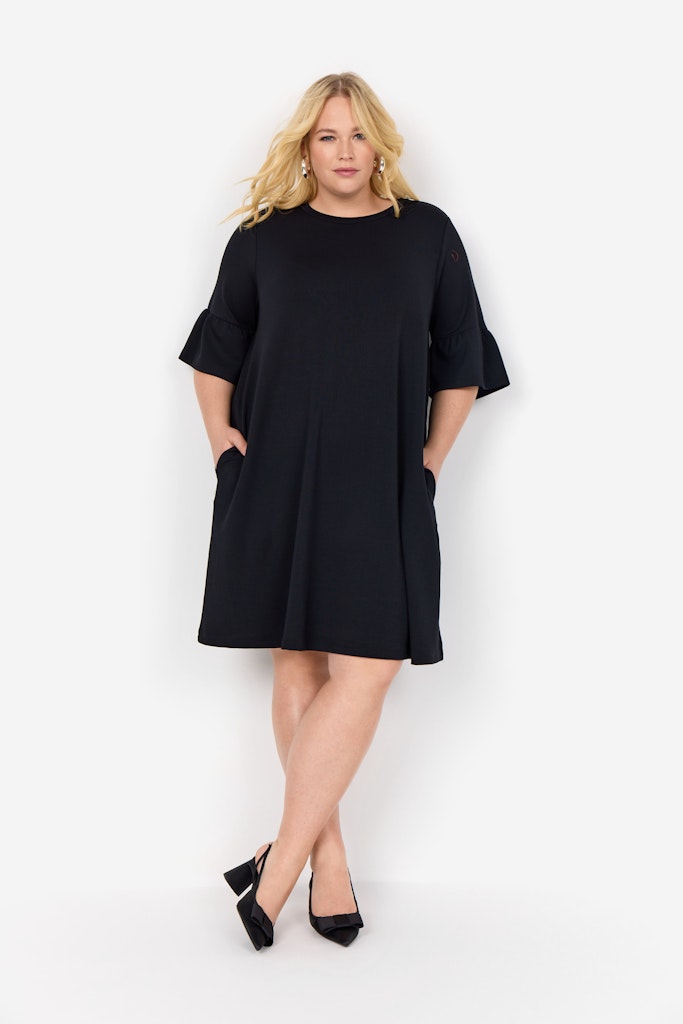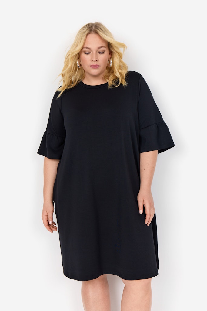Das WA-SABINA 56 Kleid ist aus 48% Modal, 48% Polyester und 4% Elastan gefertigt. Das Kleid hat ausgestellte kurze Ärmel und eine schmeichelhafte knielange Form. Kombiniere es mit Ankle Boots oder lässigen Sneakern für einen stilvollen Look.