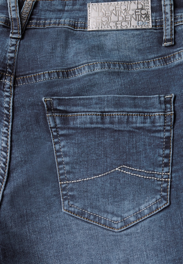 Die Jeans im Style Scarlett von CECIL für Damen begeistert mit Mid Waist, Slim Legs und einer klassischen blauen Waschung. Der Casual Fit sorgt für einen bequemen Sitz, während der stretchige Baumwollmix angenehmen Tragekomfort bietet. Jeanshose Mid Waist und Slim Legs Blaue Waschung 5-Pocket-Style Baumwollmix mit Stretchanteil Material: 83% Baumwolle, 15% Polyester, 2% Elasthan