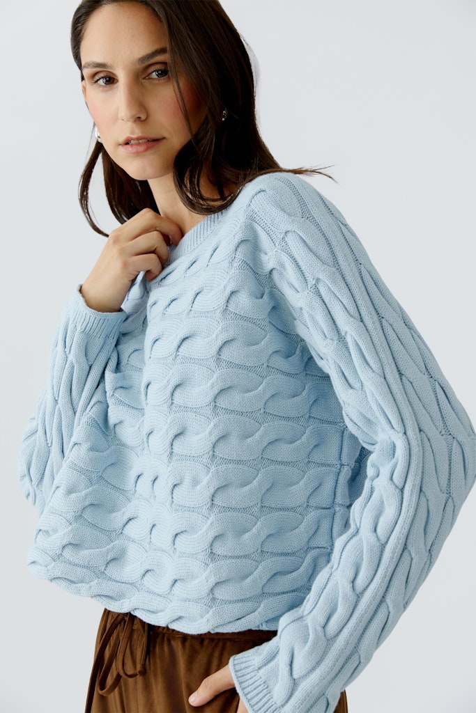 Cottonina: weiche Hochbausch Baumwollmischung quer allover im Zopfmuster gestrickt