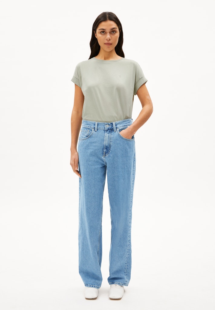 Our absolute bestseller: the IDAARA T-shirt. With its loose, relaxed fit, medium-weight jersey fabric made from soft organic cotton and a small embroidered logo, it is comfortable to wear. Perfect for everyday wear and versatile - a real must-have!