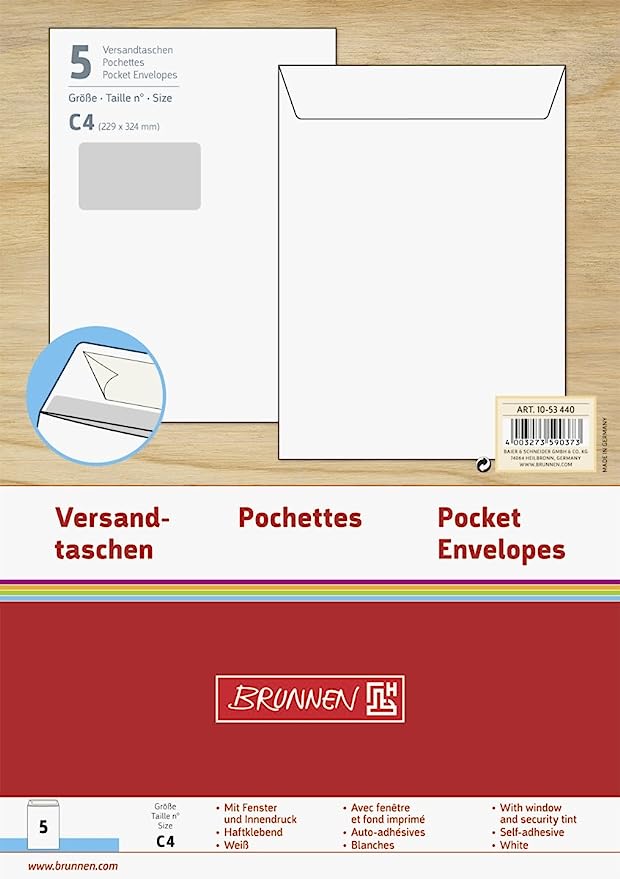 Brunnen 1053440 Versandtasche, C4, 5 Stück, 229 x 324 mm