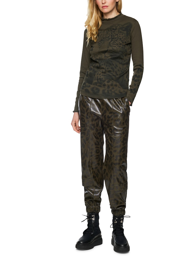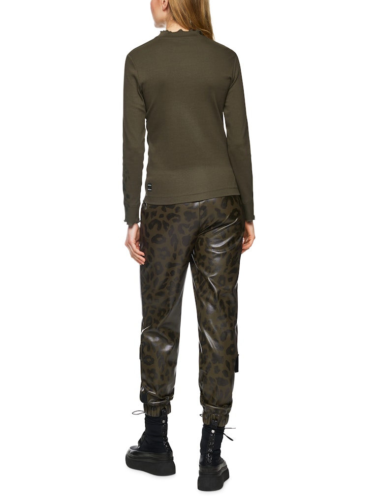 Shirt aus Baumwoll-Ripp mit Leo|Langärmeliges Shirt aus stretchigem Baumwoll-Ripp. Das Modell hat eine schmale Form und einen leicht erhöhten Rundhals. Fancy, die Ärmel und Halsausschnitt, die mit einem gewellten Saum abschließen. Die Front und den Ärmel zieren einen Leo-Druck mit Blumen in Siebdruck-Optik.|Schmal geschnitten|Gerade Form|Gewellter Saum|Leo-Druck|Das Model ist 179 cm groß und trägt N3/38.