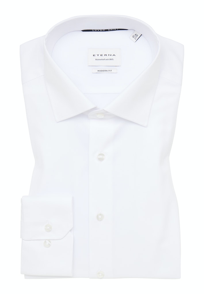 Innovative Garnkonstruktion und meisterhafte Webverfahren sorgen dafür, dass das ETERNA COVER SHIRT blickdicht ist und einen perfekten Weißgrad hat.