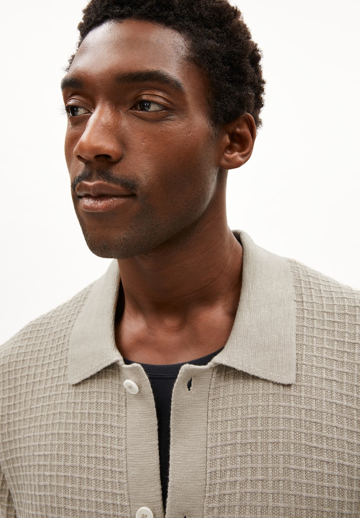 The EDUAARDO knit polo shirt, made from 100% organic cotton, features a comfortable fit and a distinctive waffle texture. A shirt collar and button placket add a classic touch. Soft on the skin and perfect for versatile styling.