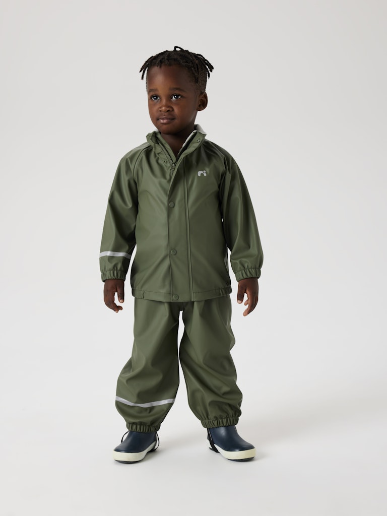 Diese technische Regenkleidung ist perfekt zum Spielen und Spaß haben im Freien, denn sie ist bequem und schützt dein Kind den ganzen Tag lang vor Nässe. NAME IT stellt seit 1986 hochwertige Outerwear mit besonderem Fokus auf Funktionalität und Sicherheit her. Wir folgen den aktuellen Modetrends und setzen diese in bequeme Outerwear für Kinder um.- Produktart : Regenset- Funktion : Wasserdicht bis 10,000 mm- Funktion : Verschweißte Nähte für vollständige Wasserdichtigkeit- Ausschnitt : Kapuze- Ärmelbündchen : Elastische Ärmelbündchen- Träger : Verstellbare Hosenträger bis Größe 104- Verschluss : Reißverschluss- Beindetails : Abnehmbare & verstellbare elastische Fußschlaufen für einen bequemen Sitz um den Fuß- Beindetails : Elastische Säume- Weitere Details : Dekorative reflektierende Details- Weitere Details : Abnehmbare Kapuze für Sicherheit- Weitere Details : Elastischer Bund- Weitere Details : Schutz am Reißverschluss verhindert das Einklemmen der Haut
