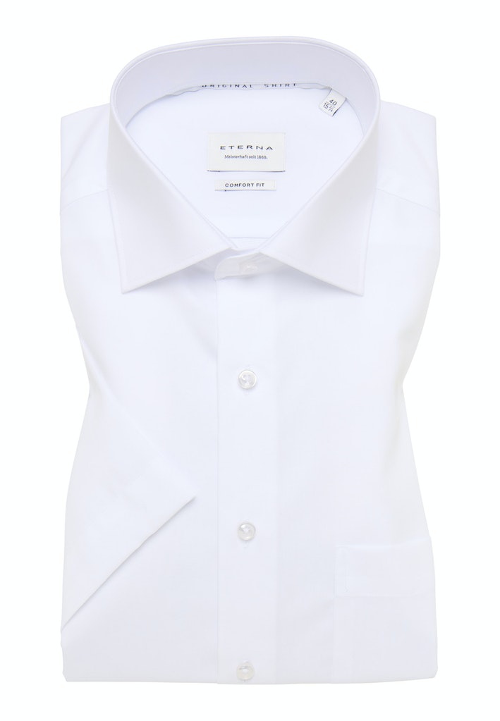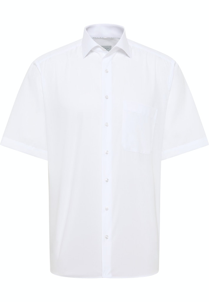 Gefertigt wurde dieses unifarbene COMFORT FIT Kurzarmhemd mit Classic Kent-Kragen und Brusttasche.